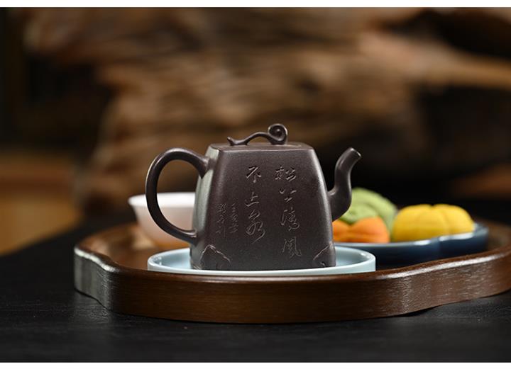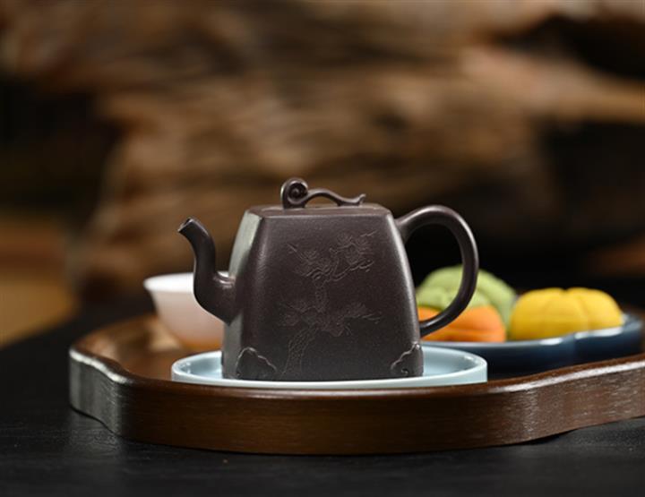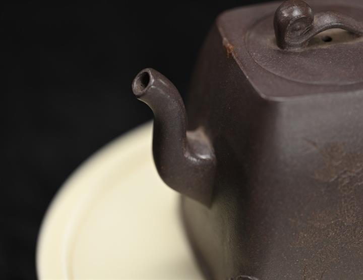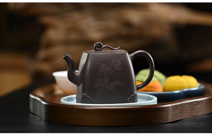 【泥料特點】砂土氣重,似淳實農民,日久使用,漸露鋒芒,養成變化,溫潤莊重。紫砂是壹種雙重氣孔結構的多孔性材質,氣孔微細,密度高。用紫砂壺沏茶,不失原味,且香不渙散,得茶之真香真味。紫砂使用越久,壺身色澤越發光亮照人,氣韻溫雅。紫砂壺長久使用器身會因撫摸擦拭,變得越發溫潤光澤。
