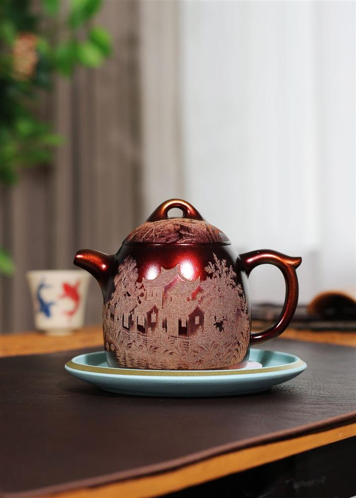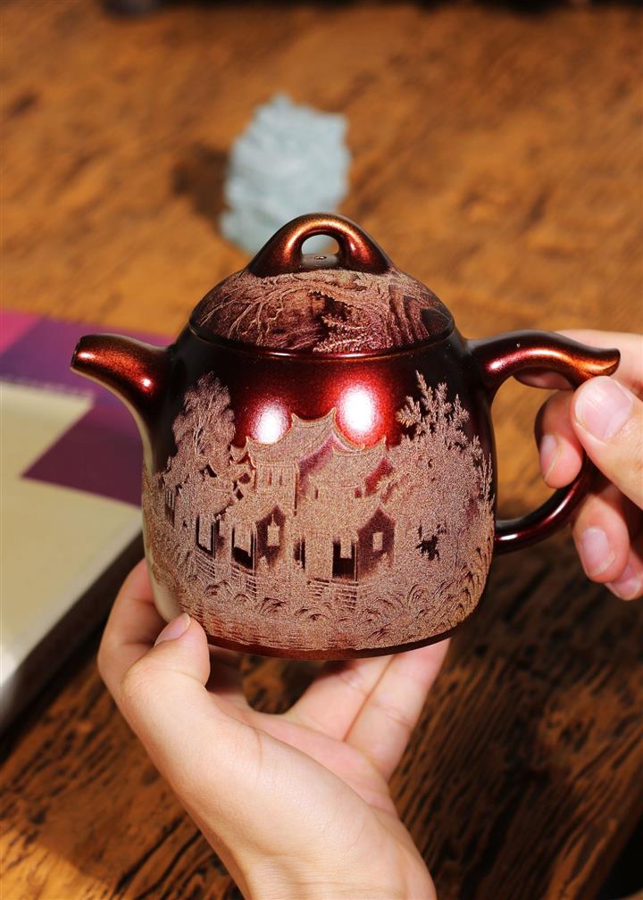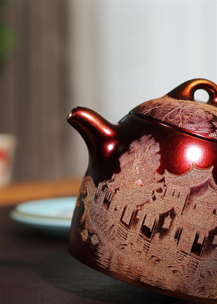 原礦雲霧沈香柴燒純手工刻繪六方漢雲壺POT6580