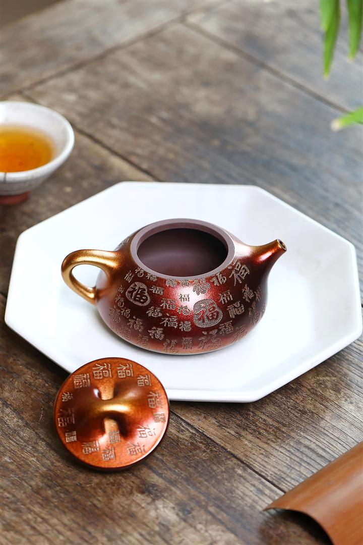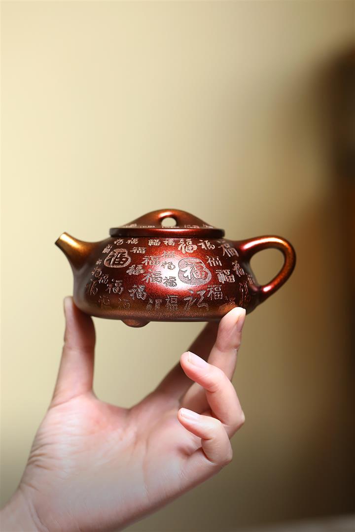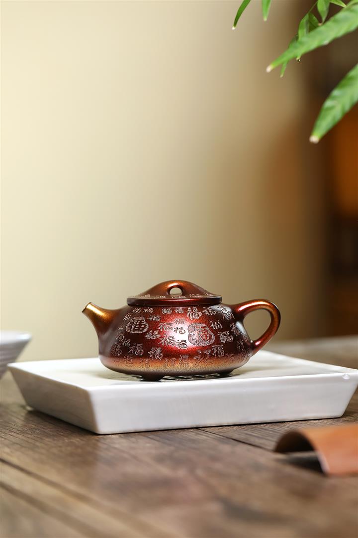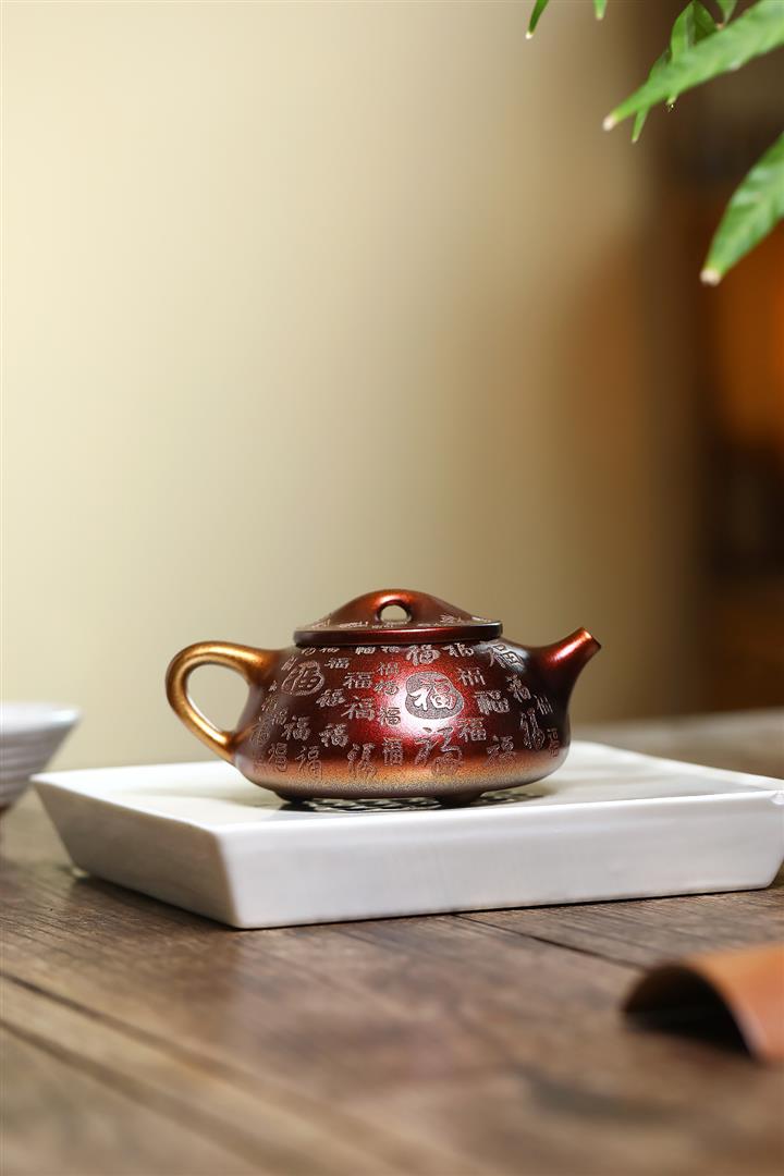 220cc原礦龍血砂貝殼燒百福景舟石瓢茶壺POT8835
