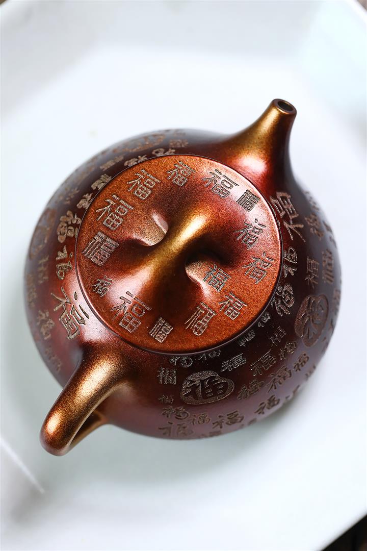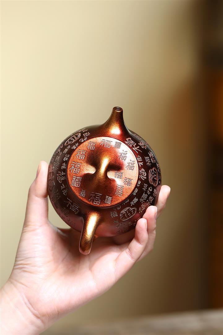 原礦陳腐老紫泥刻繪描金佛蓮茶壺POT6976