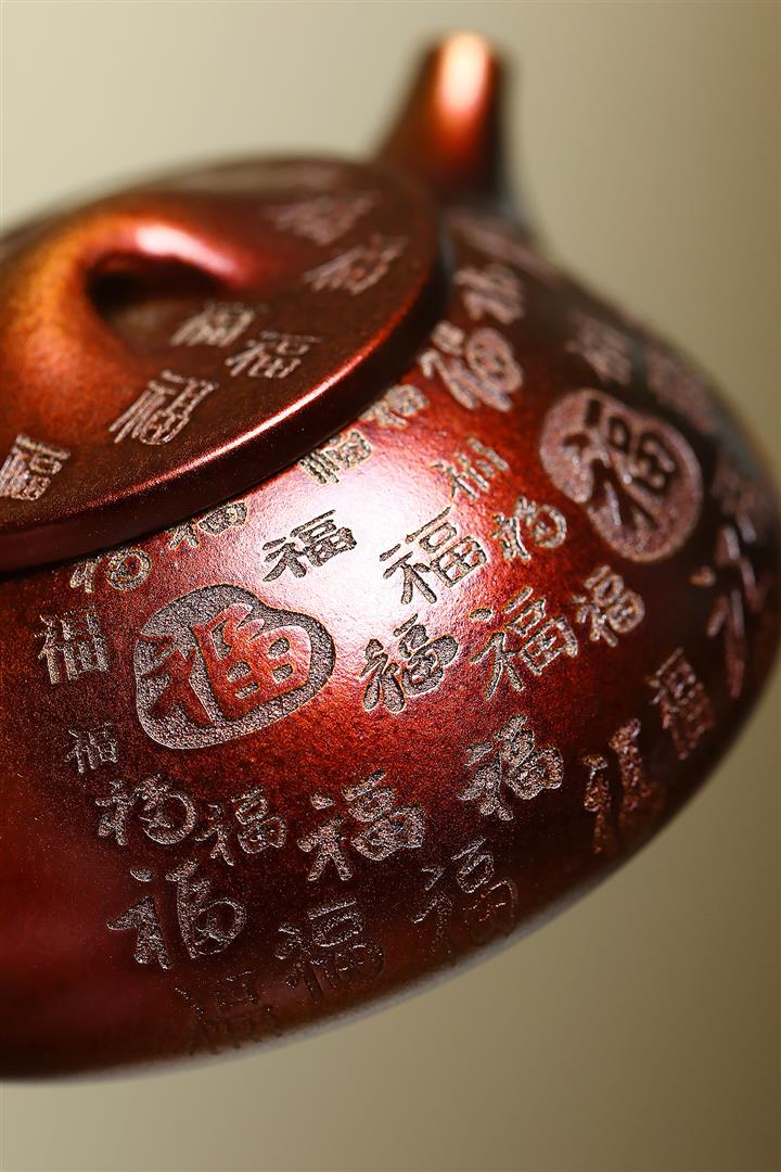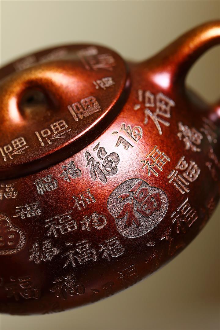 原礦大紅袍刻繪漁翁掇球壺POT6978