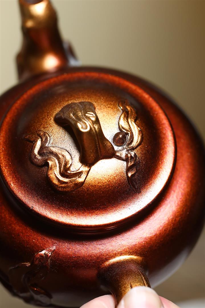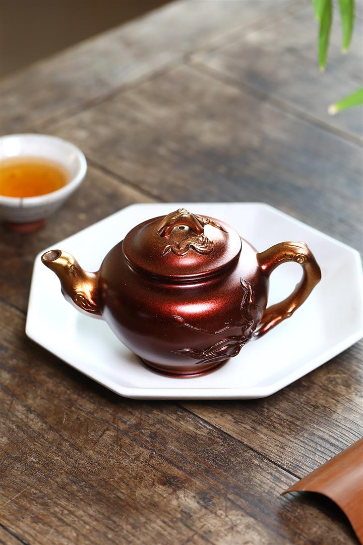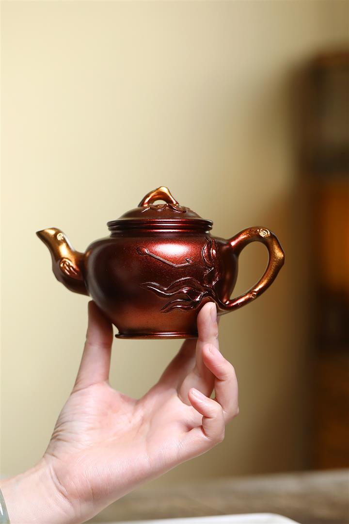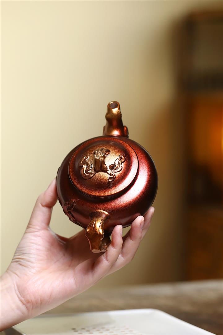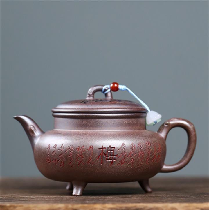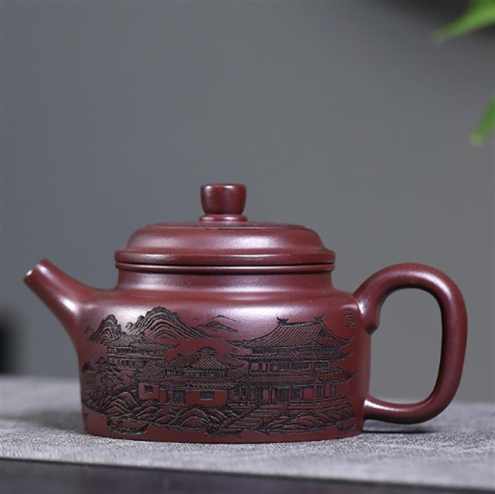 320cc原礦紅皮龍刻繪山水秦權泡茶壺POT8411