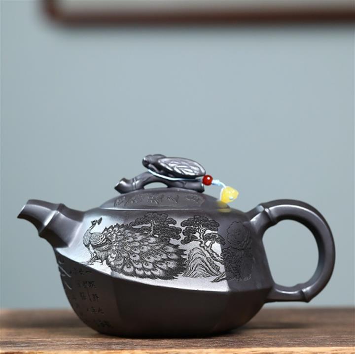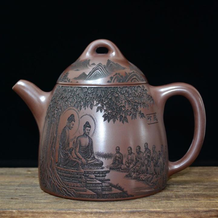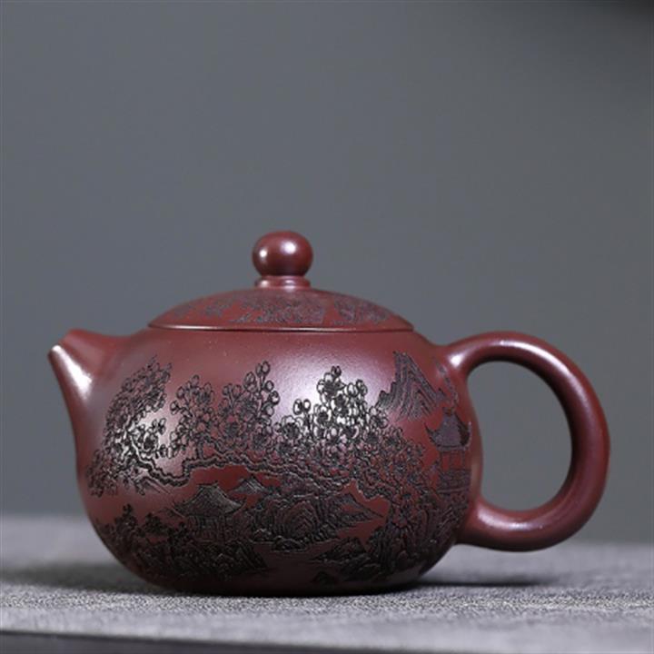 320cc原礦石紅泥滿刻桃源西施茶壺POT8404