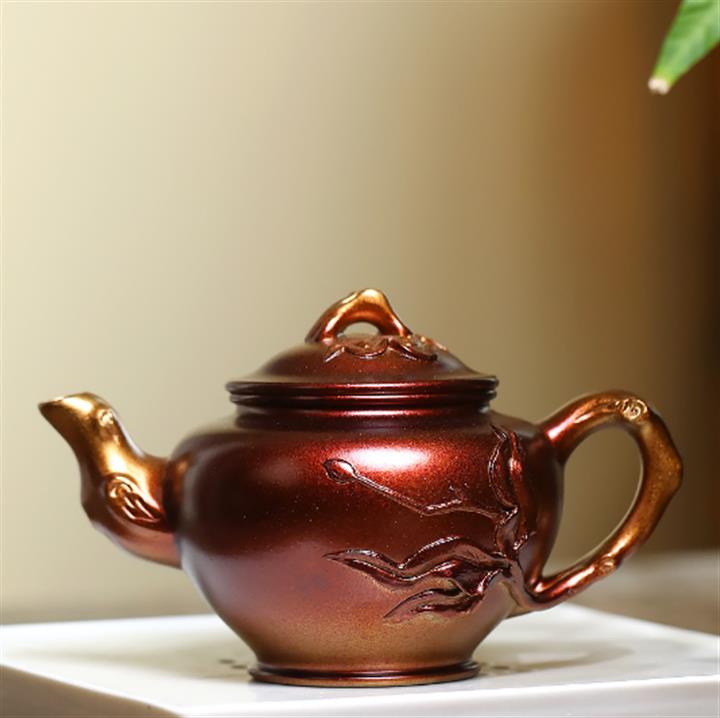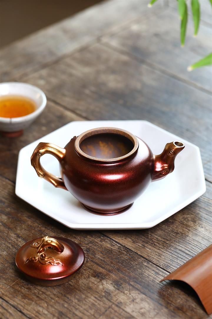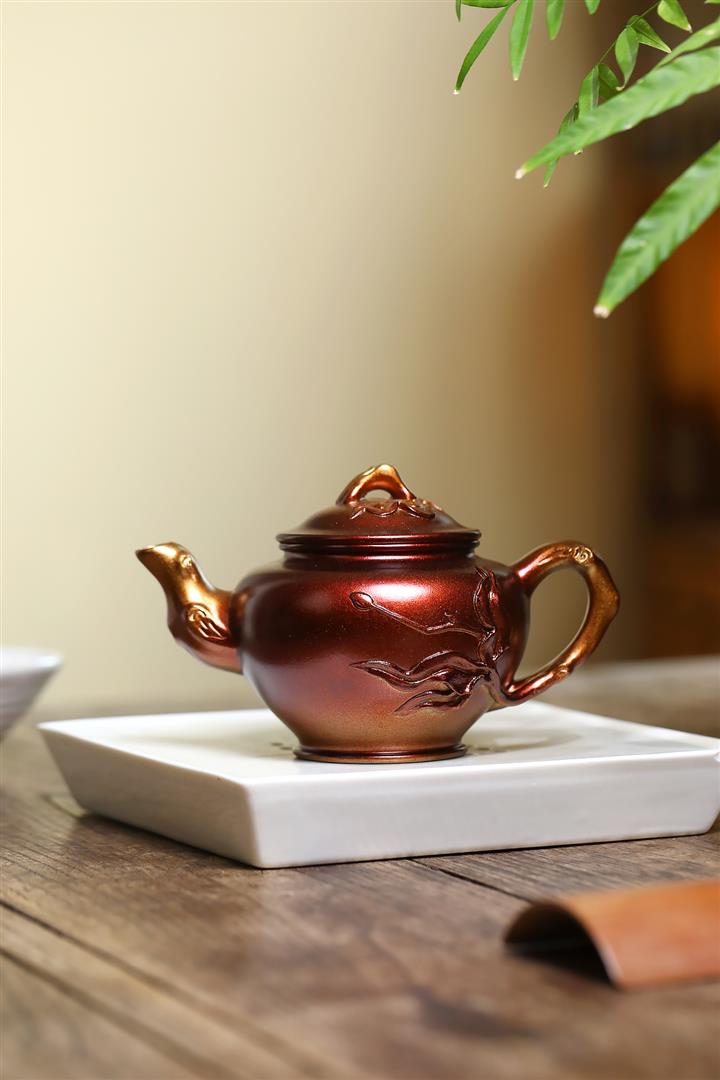 160cc原礦柴燒胭脂段泥疏影暗香茶壺POT8408