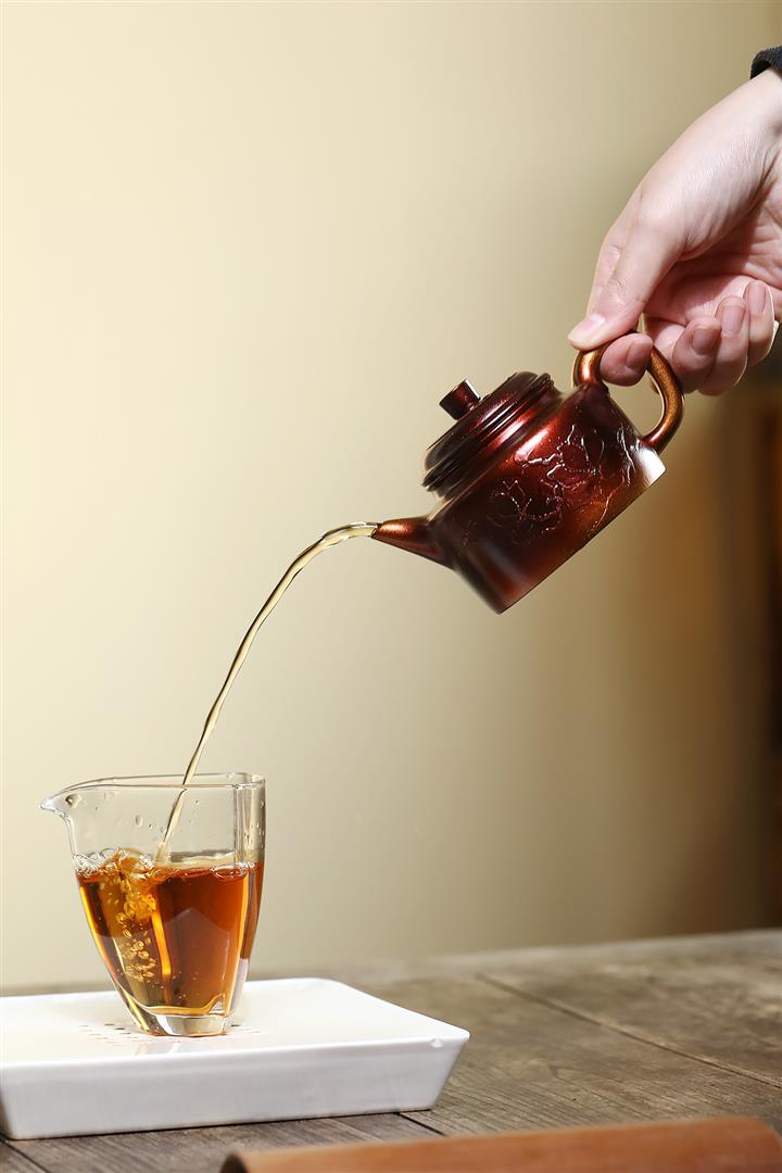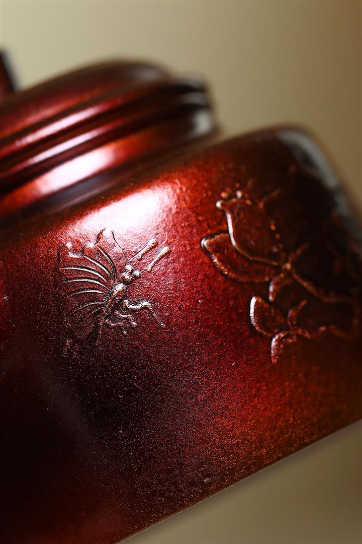 【泥料特點】砂土氣重,似淳實農民,日久使用,漸露鋒芒,養成變化,溫潤莊重。紫砂是壹種雙重氣孔結構的多孔性材質,氣孔微細,密度高。用紫砂壺沏茶,不失原味,且香不渙散,得茶之真香真味。紫砂使用越久,壺身色澤越發光亮照人,氣韻溫雅。紫砂壺長久使用器身會因撫摸擦拭,變得越發溫潤光澤。