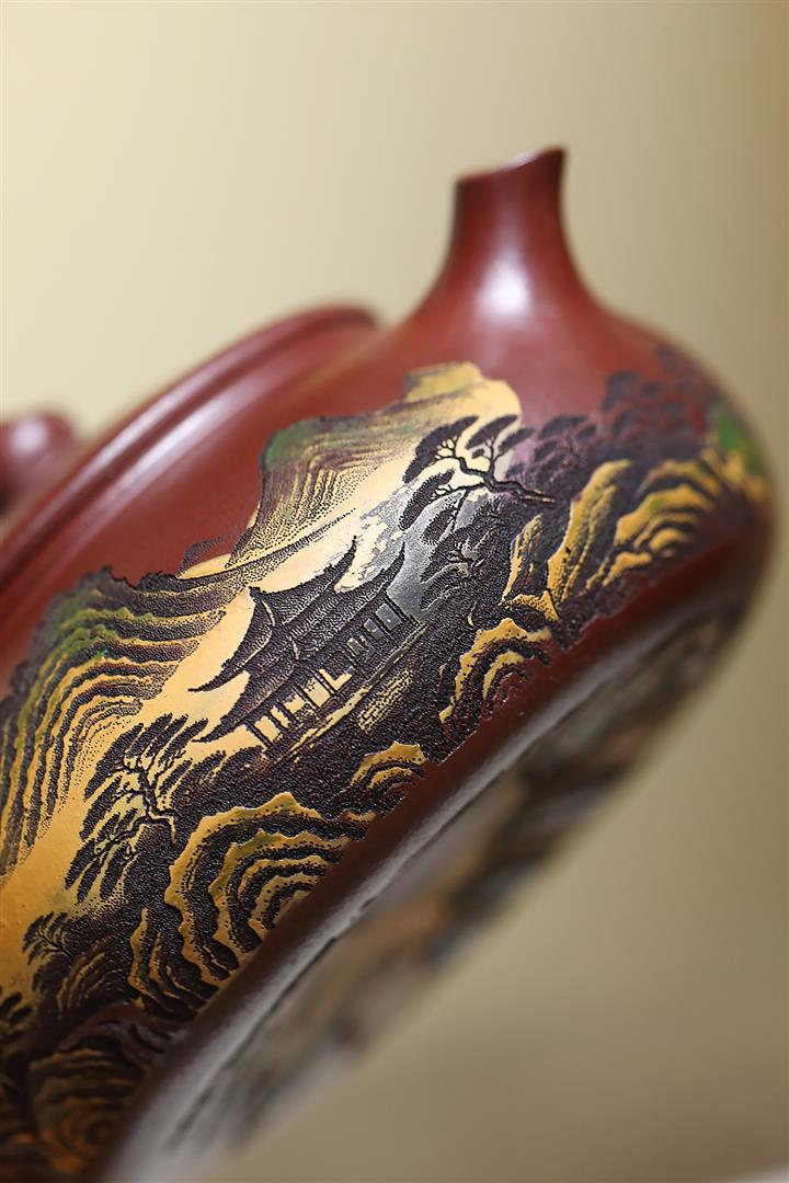 原礦赤金朱泥描金葫蘆茶壺POT6604