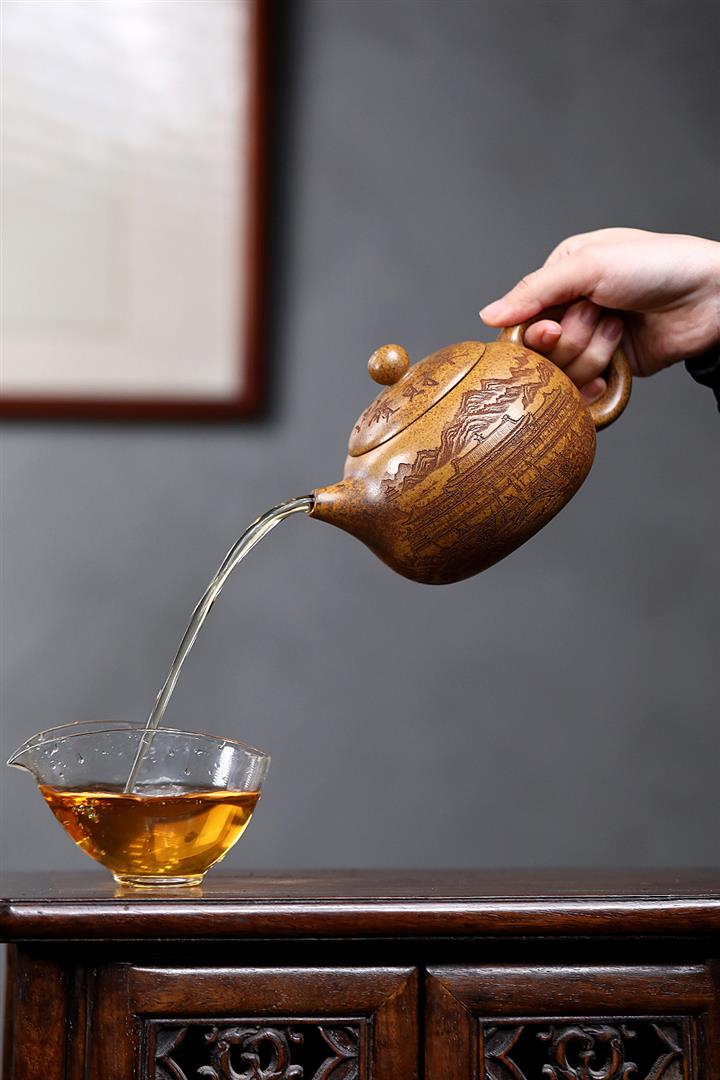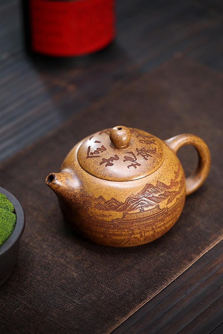 【泥料特點】砂土氣重,似淳實農民,日久使用,漸露鋒芒,養成變化,溫潤莊重。紫砂是壹種雙重氣孔結構的多孔性材質,氣孔微細,密度高。用紫砂壺沏茶,不失原味,且香不渙散,得茶之真香真味。紫砂使用越久,壺身色澤越發光亮照人,氣韻溫雅。紫砂壺長久使用器身會因撫摸擦拭,變得越發溫潤光澤。