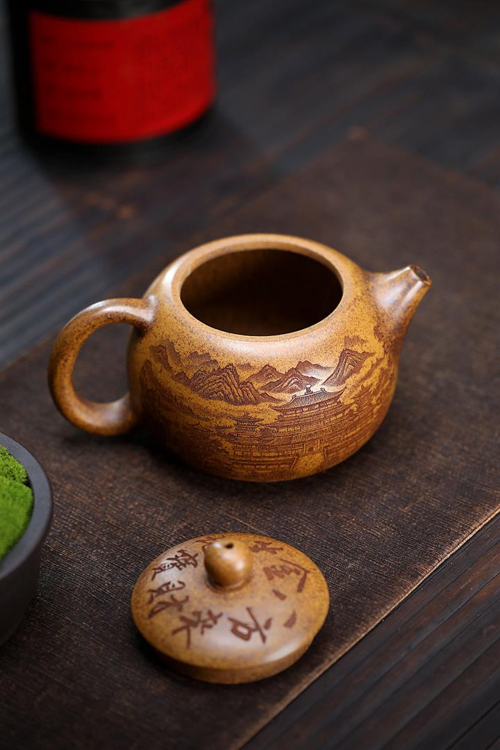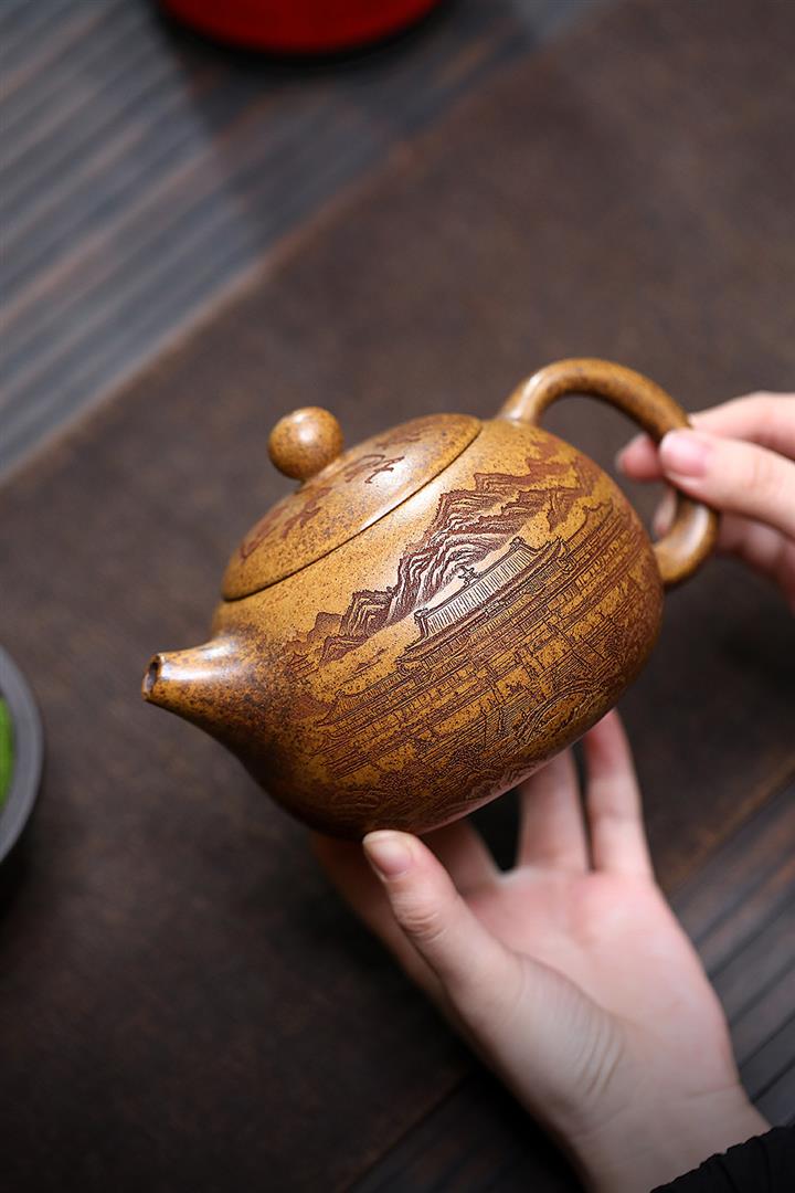 【作品介紹】此款壺形線條流暢,壺把,壺嘴,壺身壹氣呵成栩栩如生,是收藏把玩的好壺,泥料色澤古樸典雅,日久使用,漸露鋒芒,養成變化快,溫潤莊重,用其泡茶,使用的年代久,壺身就溫潤,泡出來的茶湯也就醇郁芳馨。