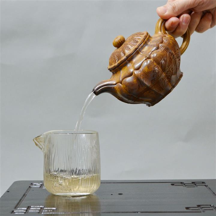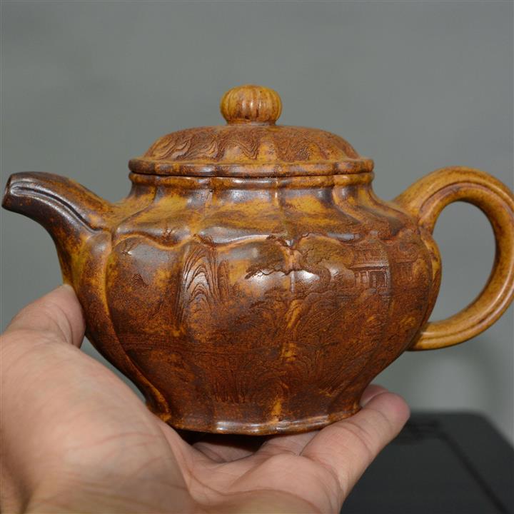 【泥料特點】砂土氣重,似淳實農民,日久使用,漸露鋒芒,養成變化,溫潤莊重。紫砂是壹種雙重氣孔結構的多孔性材質,氣孔微細,密度高。用紫砂壺沏茶,不失原味,且香不渙散,得茶之真香真味。紫砂使用越久,壺身色澤越發光亮照人,氣韻溫雅。紫砂壺長久使用器身會因撫摸擦拭,變得越發溫潤光澤。