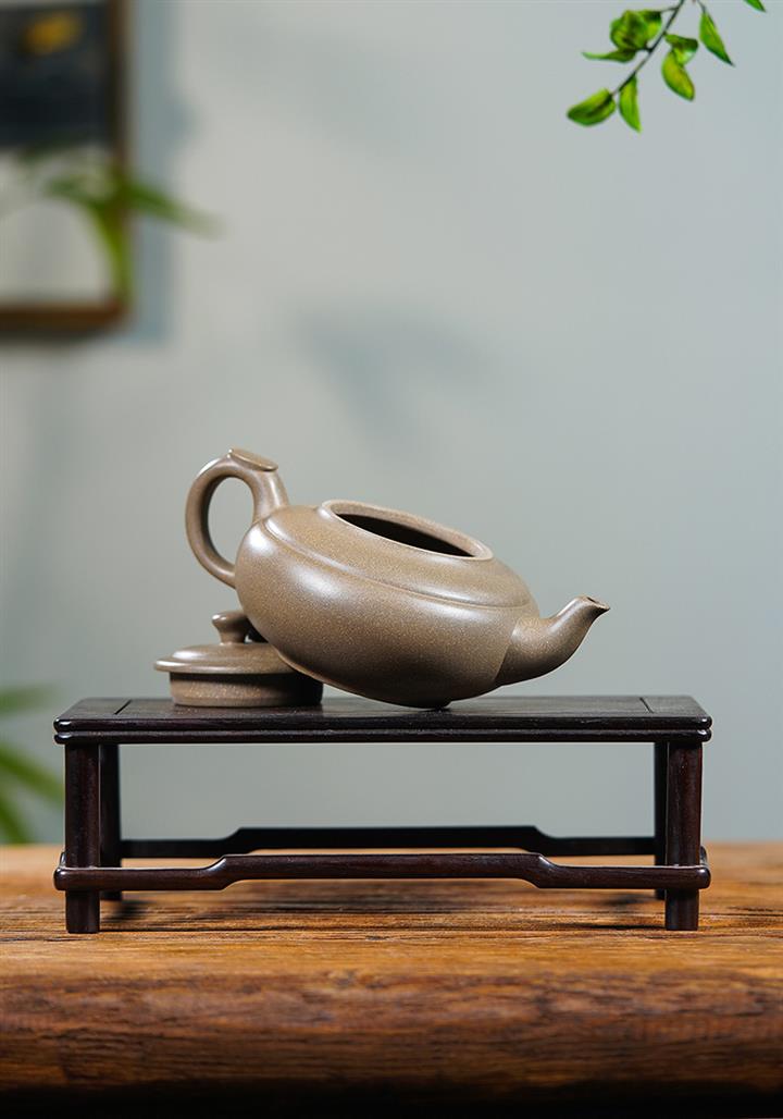 【泥料特點】砂土氣重,似淳實農民,日久使用,漸露鋒芒,養成變化,溫潤莊重。紫砂是壹種雙重氣孔結構的多孔性材質,氣孔微細,密度高。用紫砂壺沏茶,不失原味,且香不渙散,得茶之真香真味。紫砂使用越久,壺身色澤越發光亮照人,氣韻溫雅。紫砂壺長久使用器身會因撫摸擦拭,變得越發溫潤光澤。