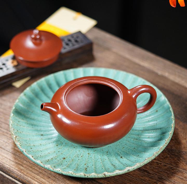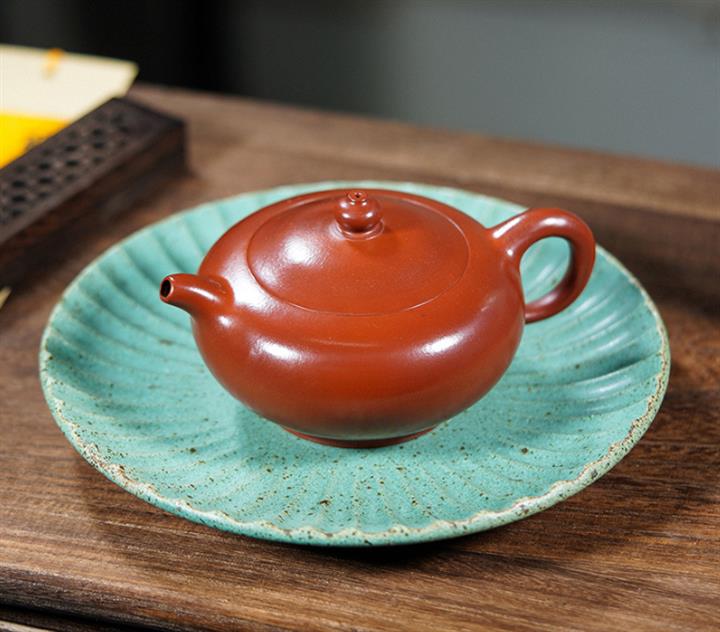 原礦秒幹龍血砂山水扁晨茶壺POT7686