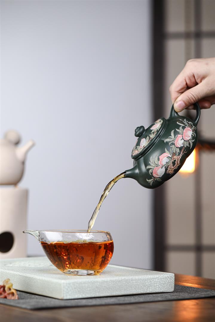 280cc原礦墨綠泥泥繪寒江茶壺POT8804