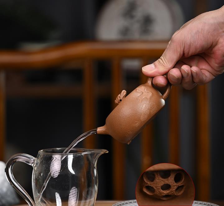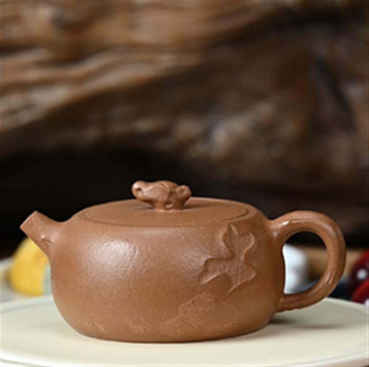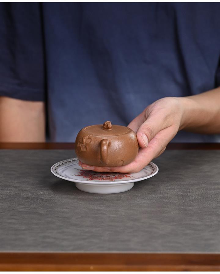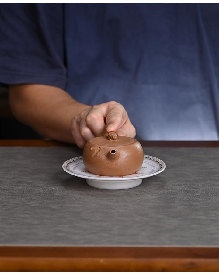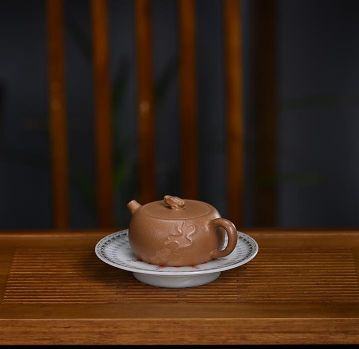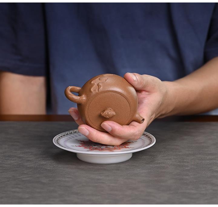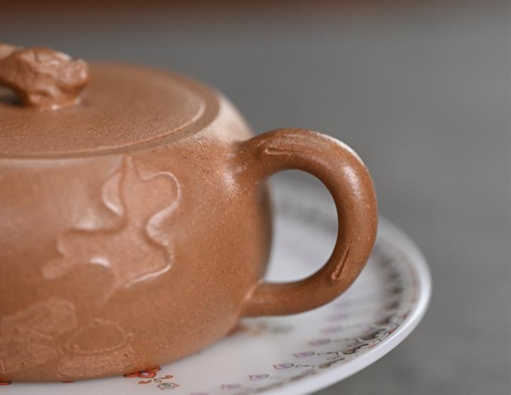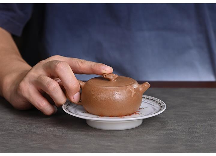 【泥料特點】砂土氣重,似淳實農民,日久使用,漸露鋒芒,養成變化,溫潤莊重。紫砂是壹種雙重氣孔結構的多孔性材質,氣孔微細,密度高。用紫砂壺沏茶,不失原味,且香不渙散,得茶之真香真味。紫砂使用越久,壺身色澤越發光亮照人,氣韻溫雅。紫砂壺長久使用器身會因撫摸擦拭,變得越發溫潤光澤。