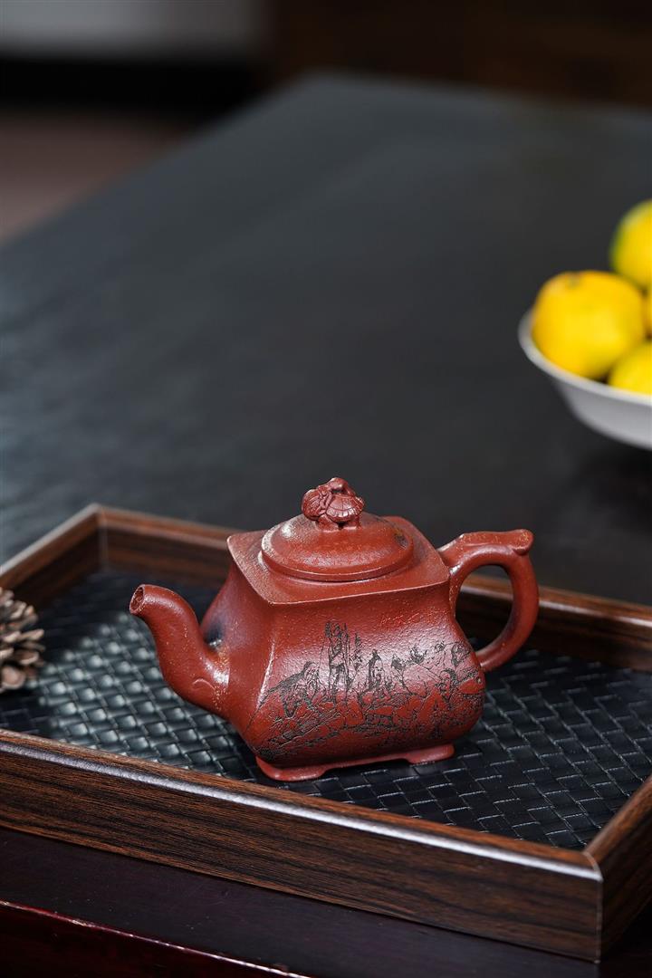 【泥料特點】砂土氣重,似淳實農民,日久使用,漸露鋒芒,養成變化,溫潤莊重。紫砂是壹種雙重氣孔結構的多孔性材質,氣孔微細,密度高。用紫砂壺沏茶,不失原味,且香不渙散,得茶之真香真味。紫砂使用越久,壺身色澤越發光亮照人,氣韻溫雅。紫砂壺長久使用器身會因撫摸擦拭,變得越發溫潤光澤。
