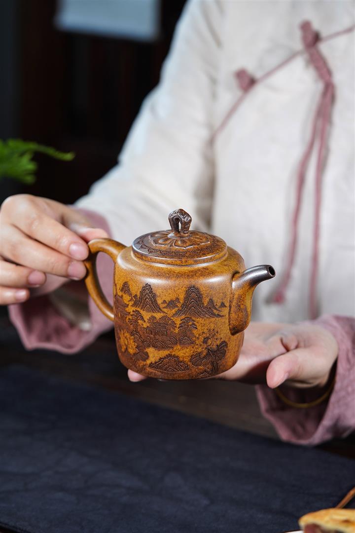 【作品介紹】此款壺形線條流暢,壺把,壺嘴,壺身壹氣呵成栩栩如生,是收藏把玩的好壺,泥料色澤古樸典雅,日久使用,漸露鋒芒,養成變化快,溫潤莊重,用其泡茶,使用的年代久,壺身就溫潤,泡出來的茶湯也就醇郁芳馨。