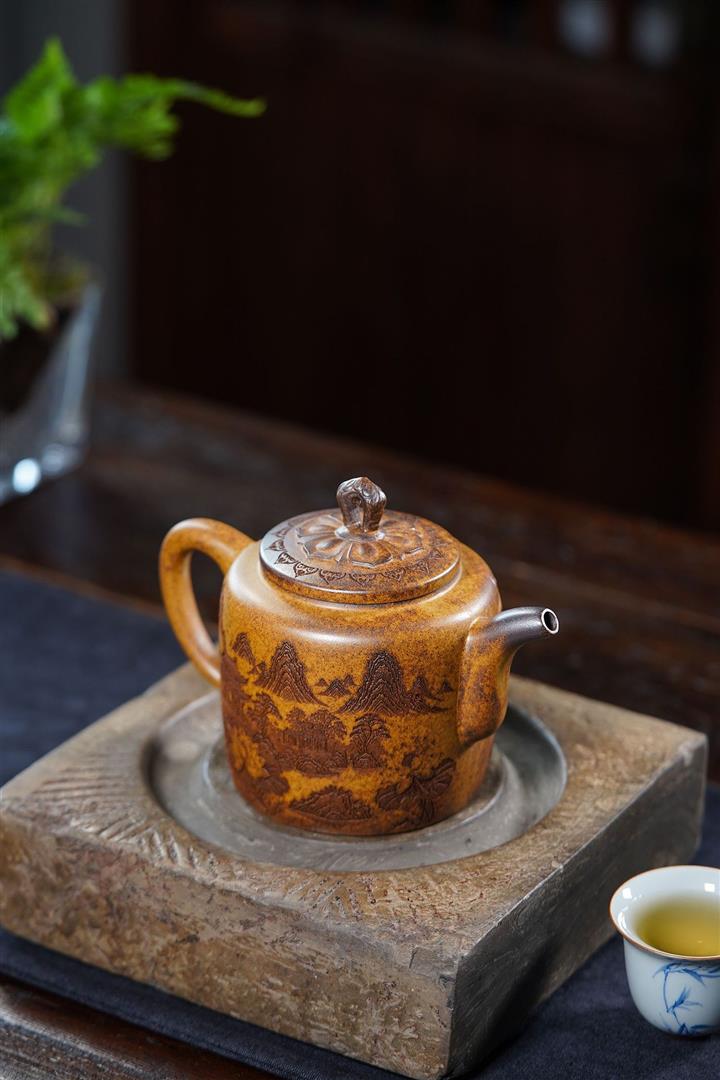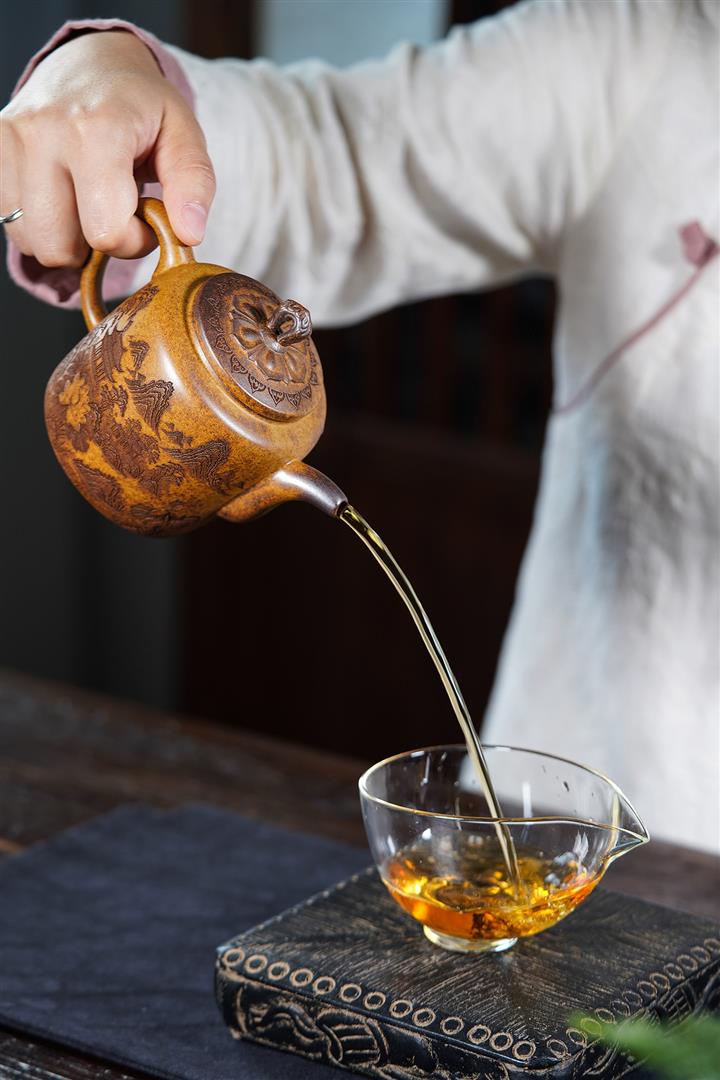【泥料特點】砂土氣重,似淳實農民,日久使用,漸露鋒芒,養成變化,溫潤莊重。紫砂是壹種雙重氣孔結構的多孔性材質,氣孔微細,密度高。用紫砂壺沏茶,不失原味,且香不渙散,得茶之真香真味。紫砂使用越久,壺身色澤越發光亮照人,氣韻溫雅。紫砂壺長久使用器身會因撫摸擦拭,變得越發溫潤光澤。