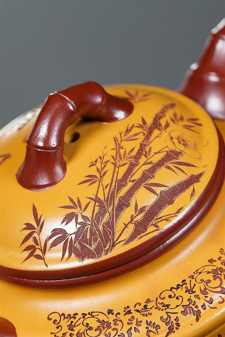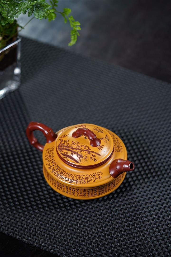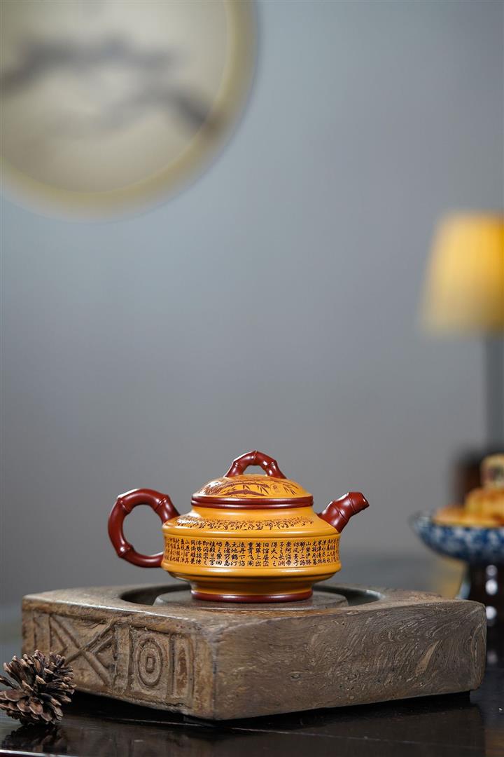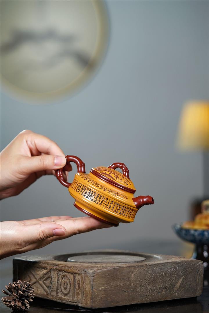 220cc原礦大紅袍雙色雙線竹鼓茶壺POT8865