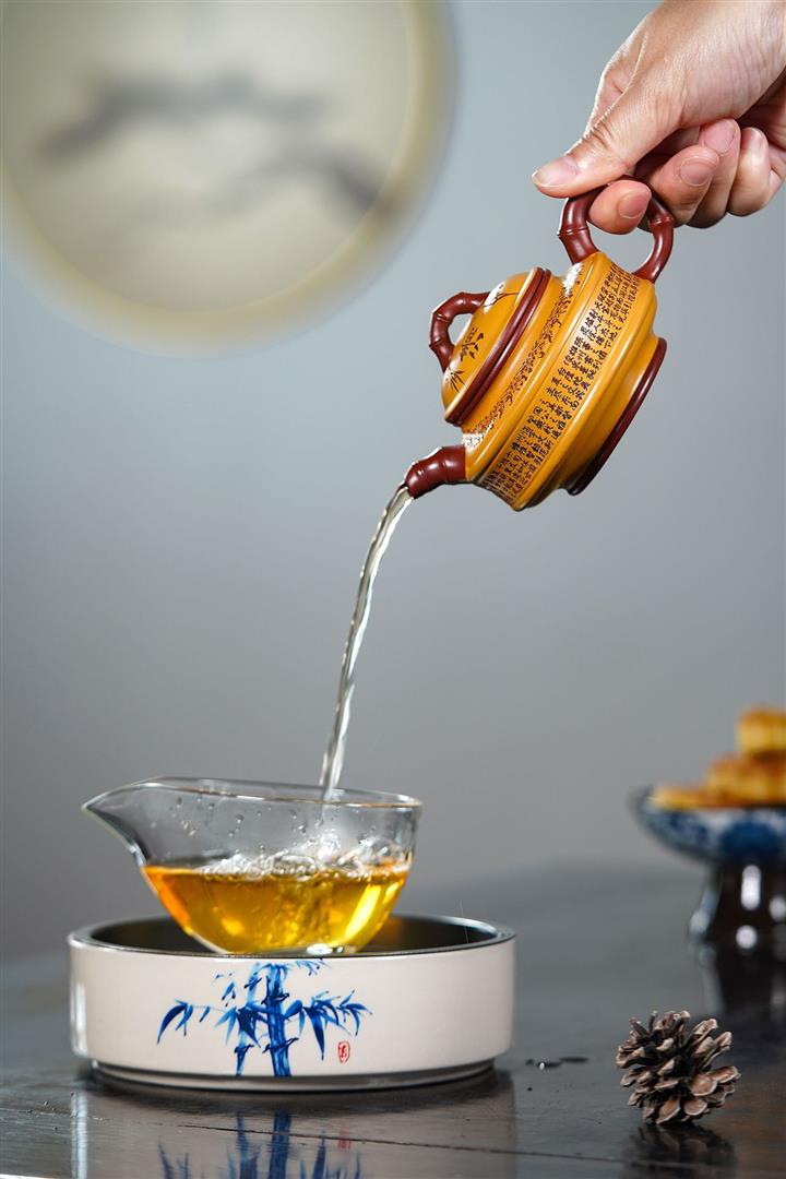 【泥料特點】砂土氣重,似淳實農民,日久使用,漸露鋒芒,養成變化,溫潤莊重。紫砂是壹種雙重氣孔結構的多孔性材質,氣孔微細,密度高。用紫砂壺沏茶,不失原味,且香不渙散,得茶之真香真味。紫砂使用越久,壺身色澤越發光亮照人,氣韻溫雅。紫砂壺長久使用器身會因撫摸擦拭,變得越發溫潤光澤。
