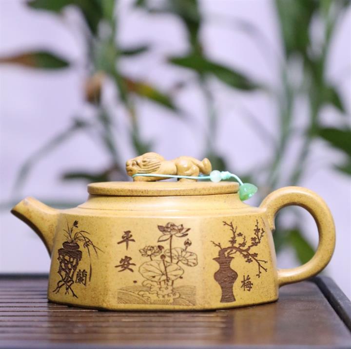 【作品介紹】此款壺形線條流暢,壺把,壺嘴,壺身壹氣呵成栩栩如生,是收藏把玩的好壺,泥料色澤古樸典雅,日久使用,漸露鋒芒,養成變化快,溫潤莊重,用其泡茶,使用的年代久,壺身就溫潤,泡出來的茶湯也就醇郁芳馨。