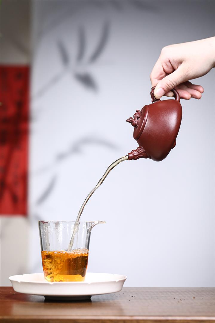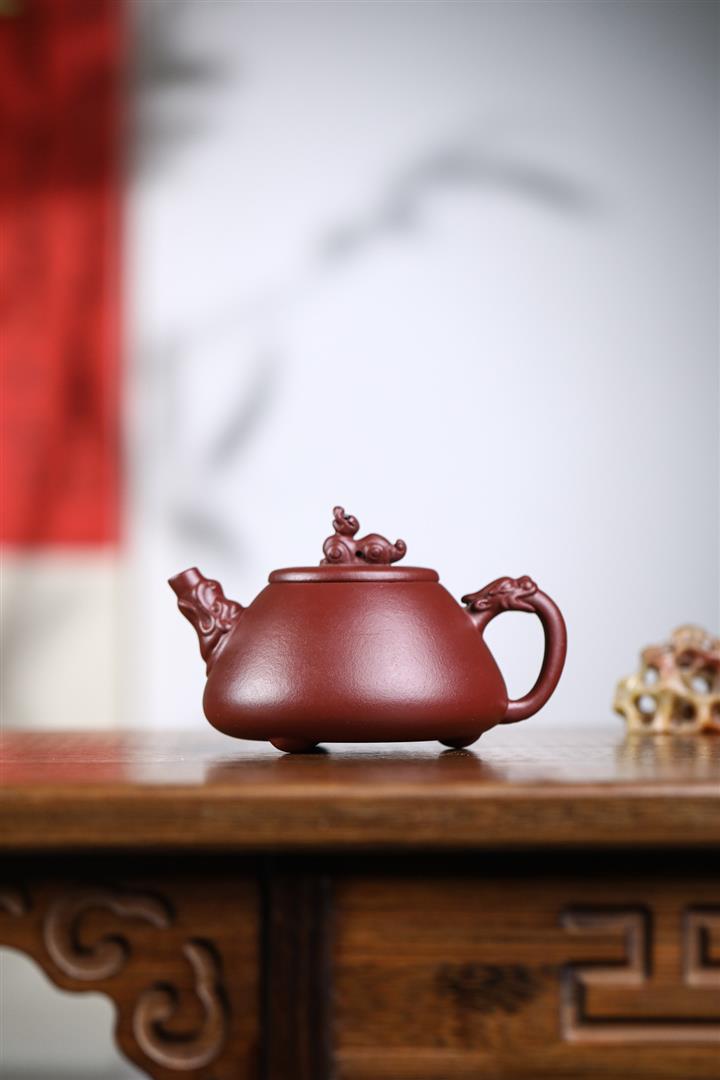 500cc原礦古紅泥鏤空遊龍戲鳳泡茶壺POT8738