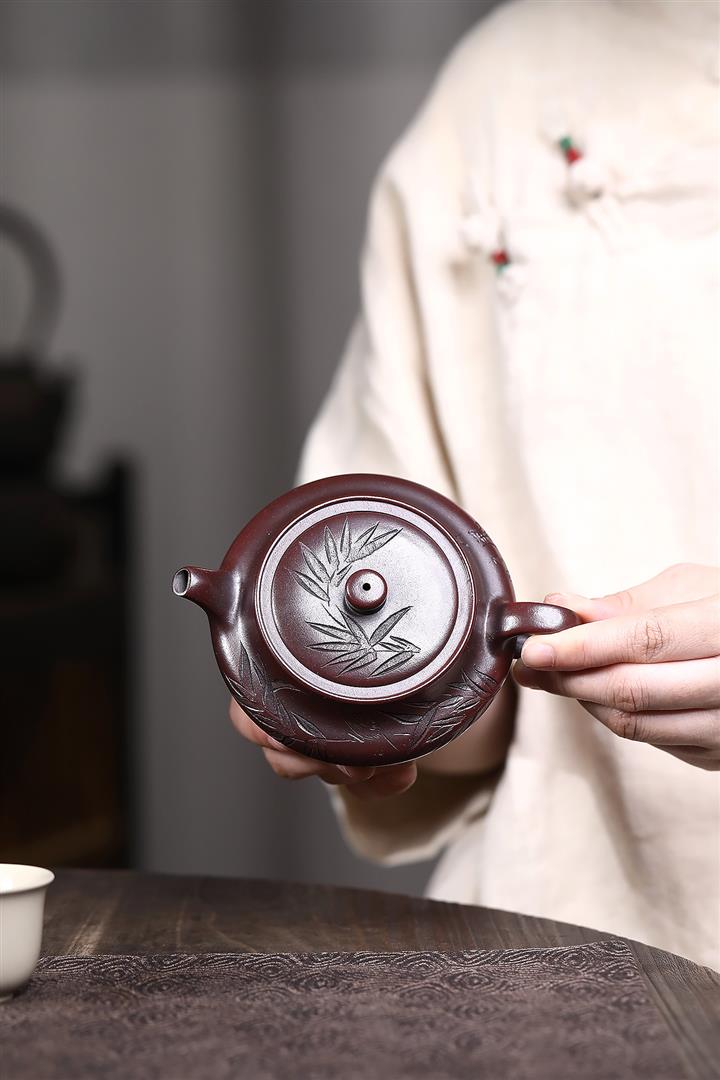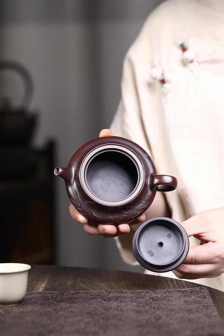 【作品介紹】此款壺形線條流暢,壺把,壺嘴,壺身壹氣呵成栩栩如生,是收藏把玩的好壺,泥料色澤古樸典雅,日久使用,漸露鋒芒,養成變化快,溫潤莊重,用其泡茶,使用的年代久,壺身就溫潤,泡出來的茶湯也就醇郁芳馨。