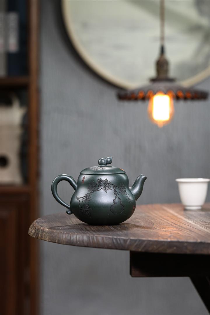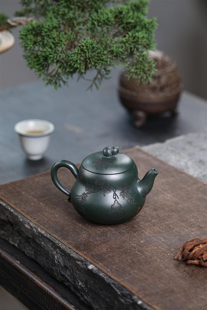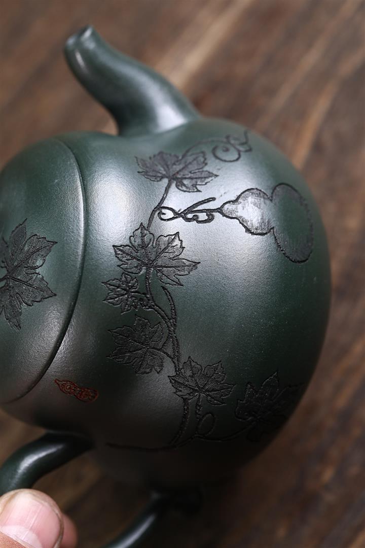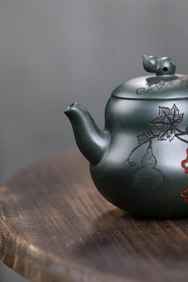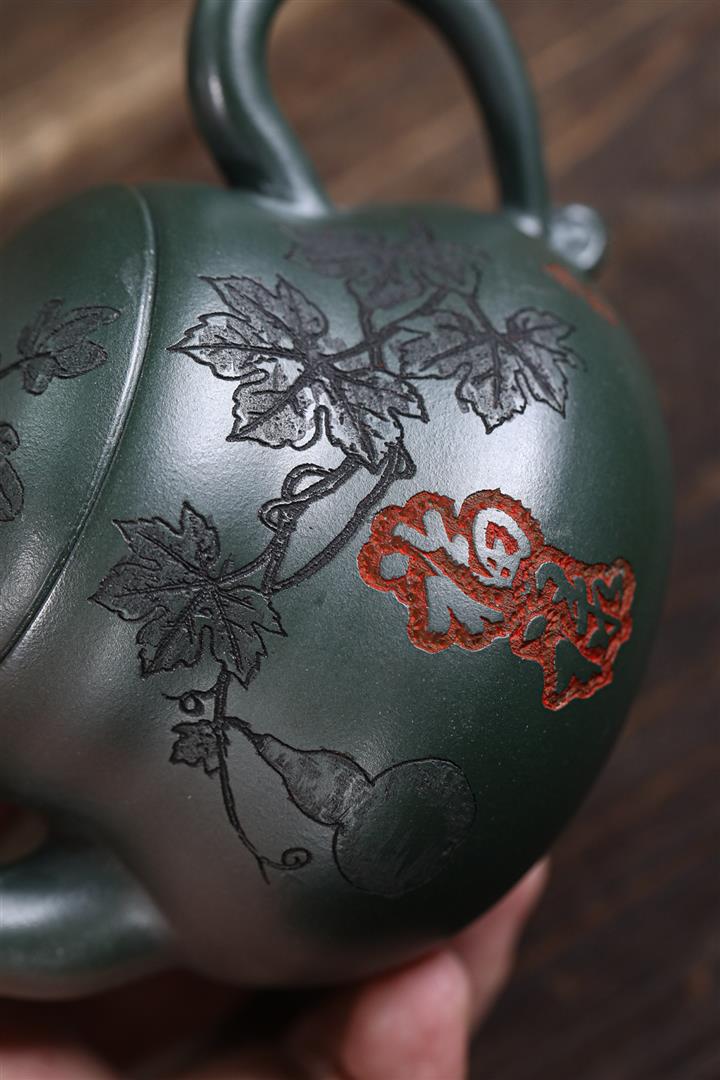 紫砂壺高石瓢刻繪半手工茶壺POT4002