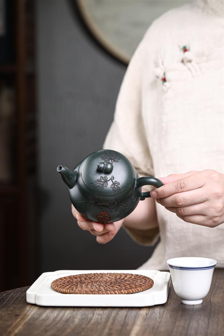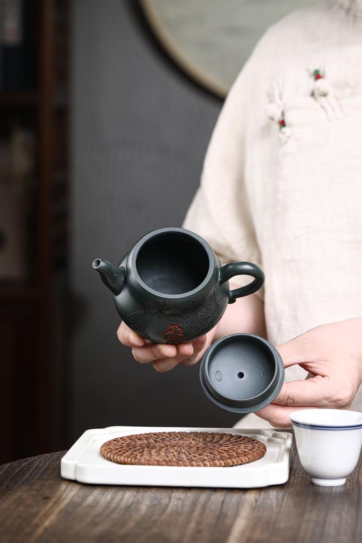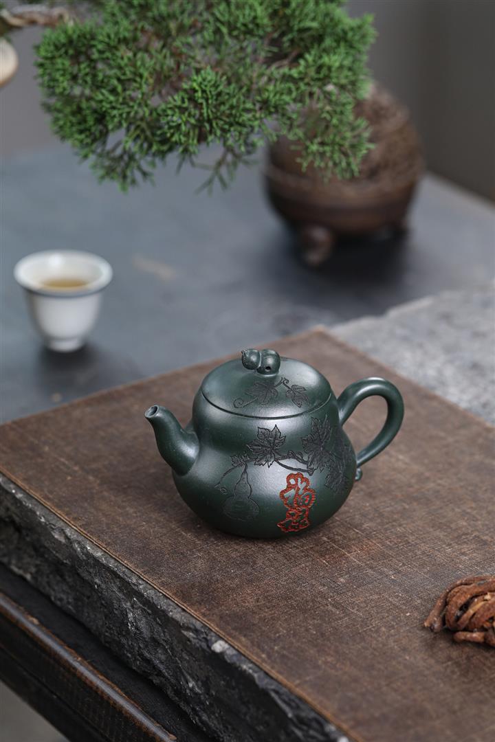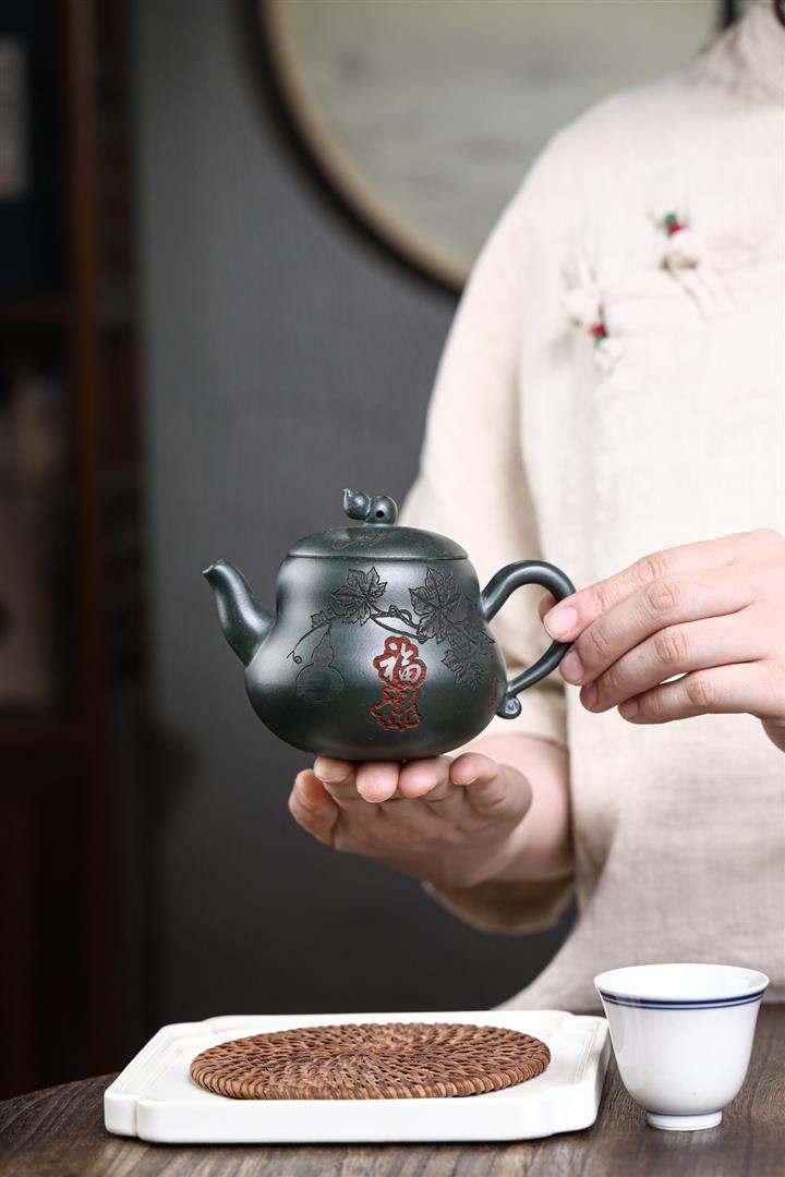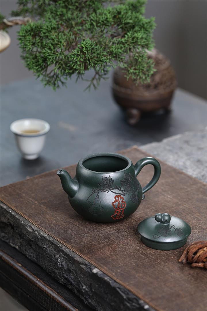 紫砂壺高石瓢刻繪半手工茶壺POT4002