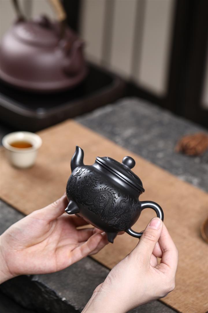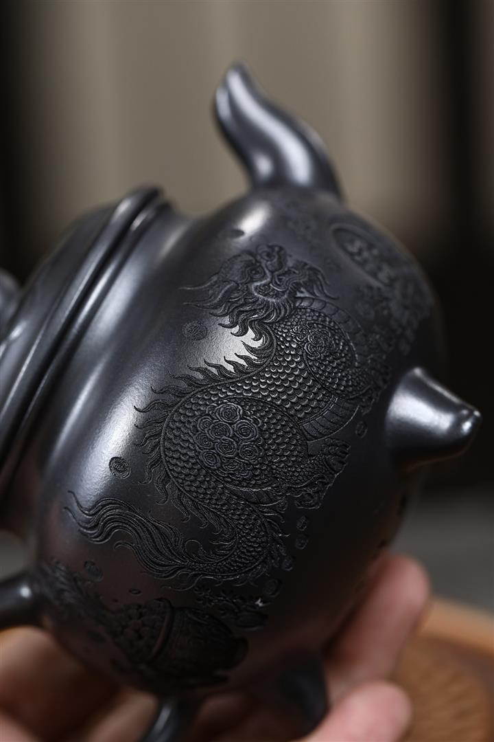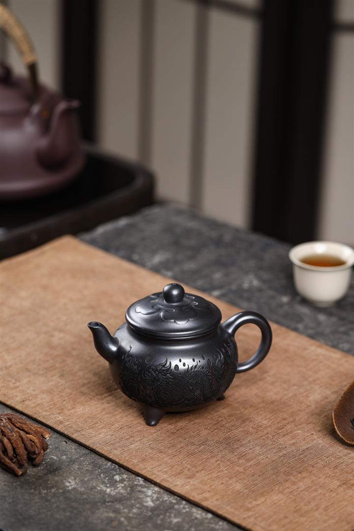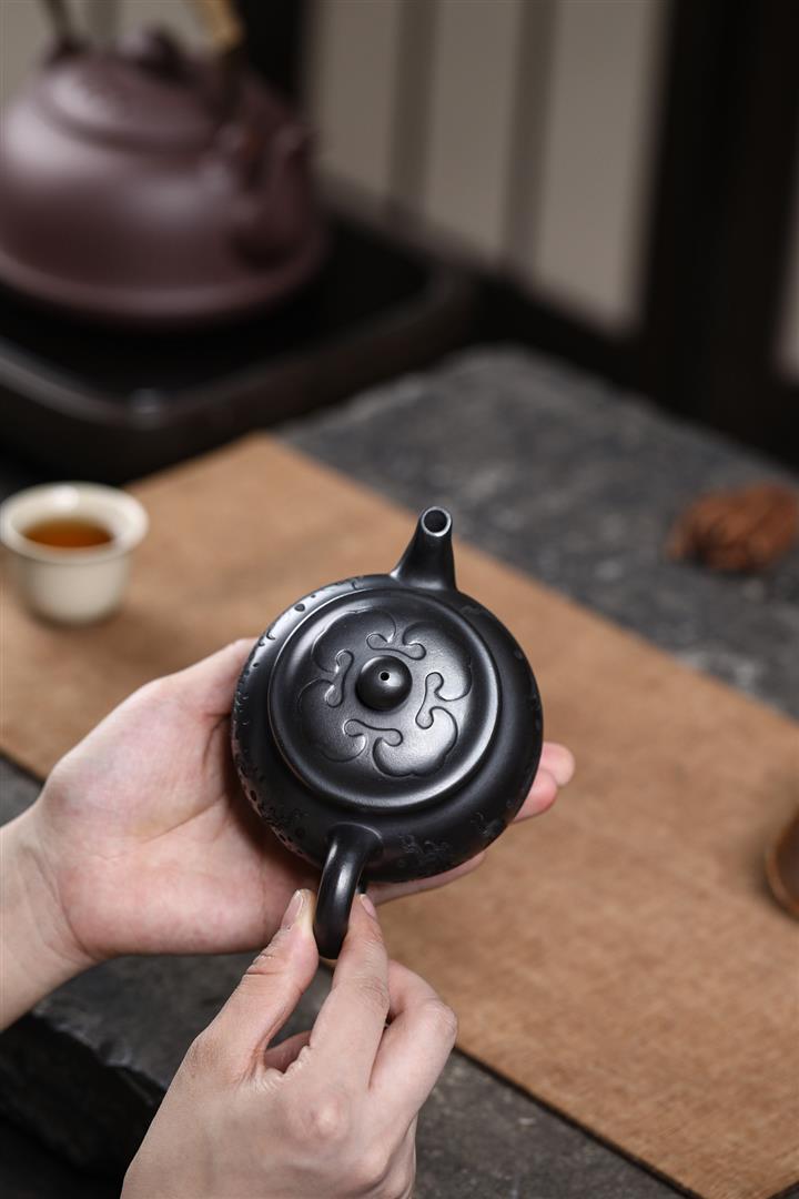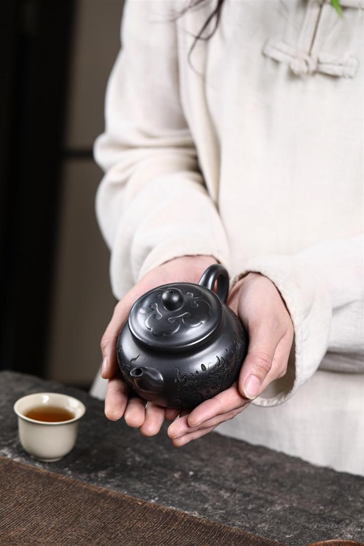 原礦古烏泥滿刻花鳥西施茶壺POT7817