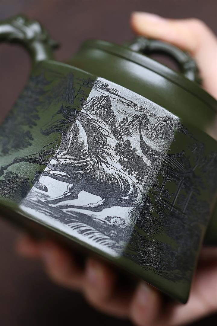 原礦青灰段手工刻字古韻茶壺 POT3571