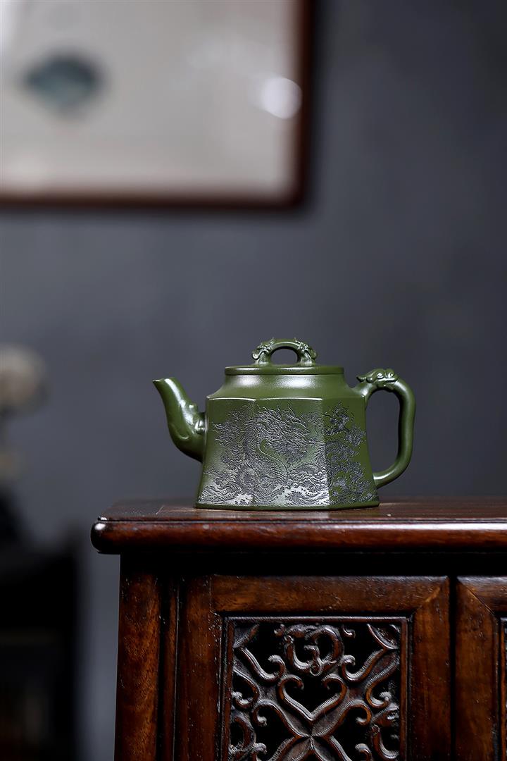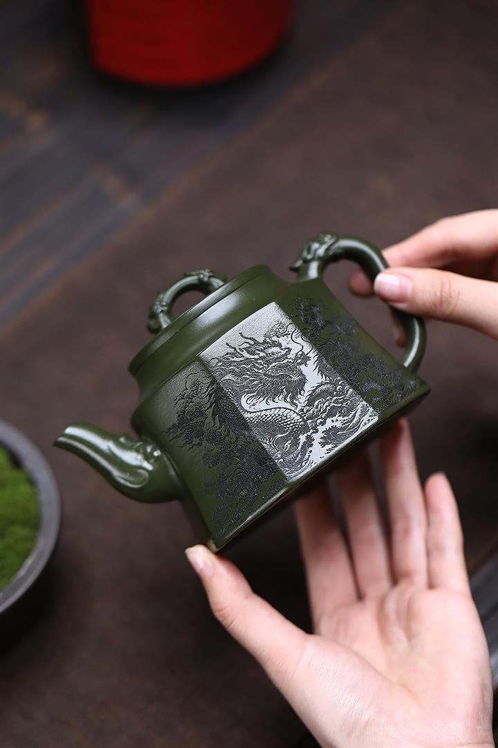 350cc原礦民國綠泥八方龍權泡茶壺POT8891
