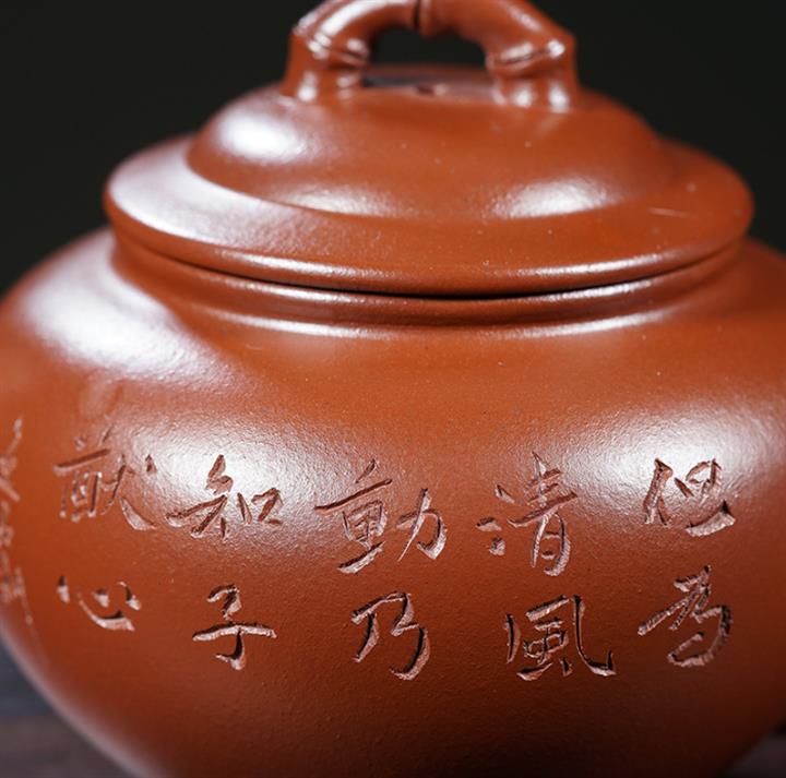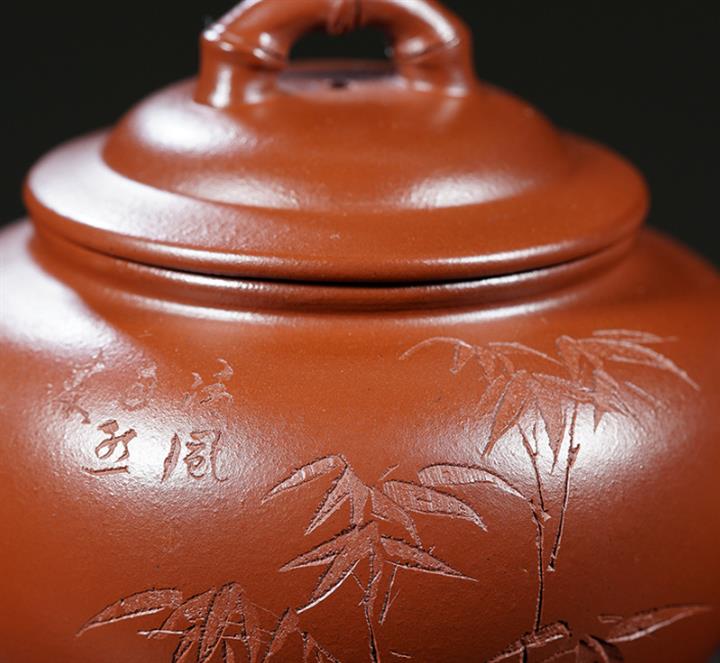 捂灰朱泥琺瑯彩燒桑扁茶壺POT7456