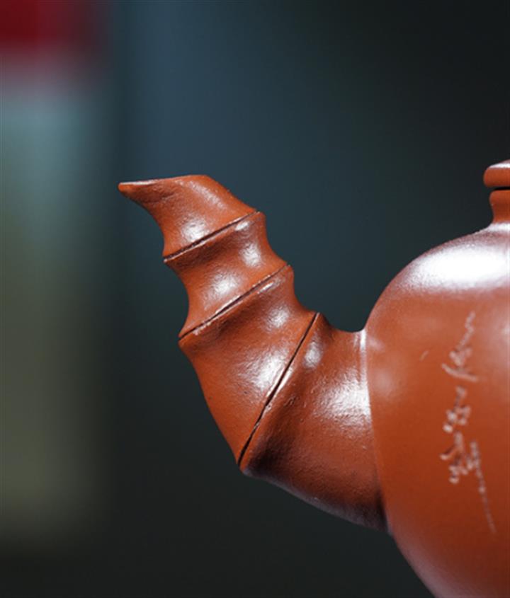 【作品介紹】此款壺形線條流暢,壺把,壺嘴,壺身壹氣呵成栩栩如生,是收藏把玩的好壺,泥料色澤古樸典雅,日久使用,漸露鋒芒,養成變化快,溫潤莊重,用其泡茶,使用的年代久,壺身就溫潤,泡出來的茶湯也就醇郁芳馨。