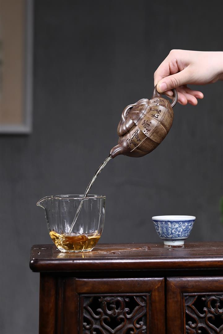 【泥料特點】砂土氣重,似淳實農民,日久使用,漸露鋒芒,養成變化,溫潤莊重。紫砂是壹種雙重氣孔結構的多孔性材質,氣孔微細,密度高。用紫砂壺沏茶,不失原味,且香不渙散,得茶之真香真味。紫砂使用越久,壺身色澤越發光亮照人,氣韻溫雅。紫砂壺長久使用器身會因撫摸擦拭,變得越發溫潤光澤。