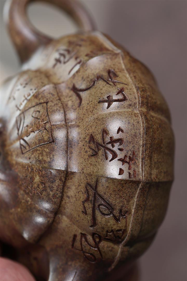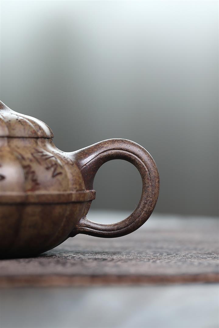 原礦紫砂松華青段子冶石瓢茶壺POT7313