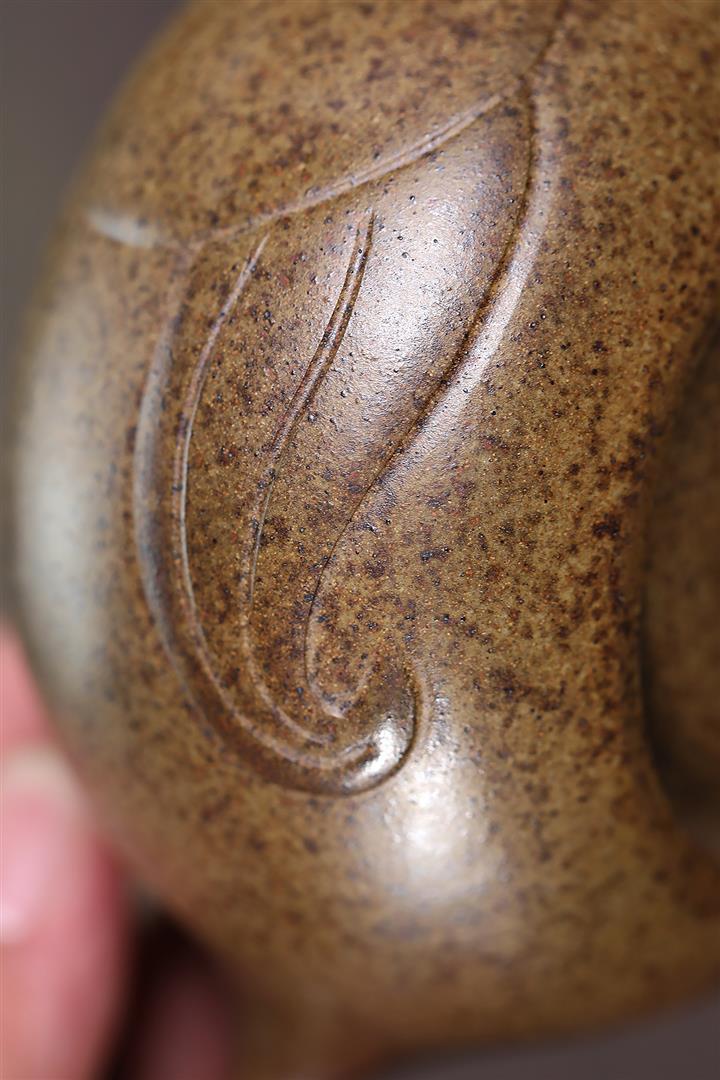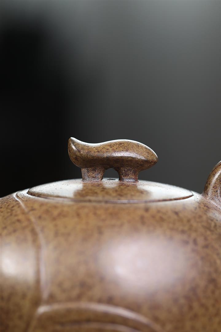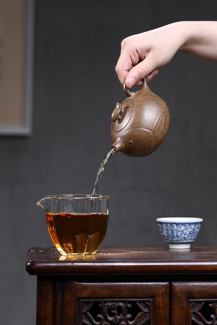 【泥料特點】砂土氣重,似淳實農民,日久使用,漸露鋒芒,養成變化,溫潤莊重。紫砂是壹種雙重氣孔結構的多孔性材質,氣孔微細,密度高。用紫砂壺沏茶,不失原味,且香不渙散,得茶之真香真味。紫砂使用越久,壺身色澤越發光亮照人,氣韻溫雅。紫砂壺長久使用器身會因撫摸擦拭,變得越發溫潤光澤。