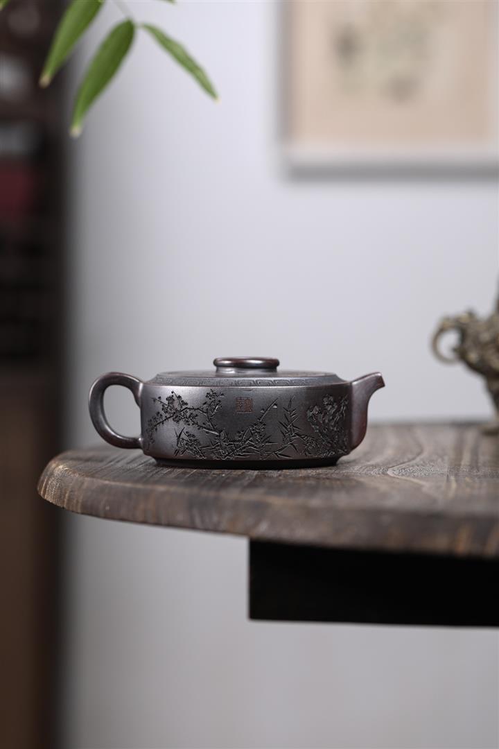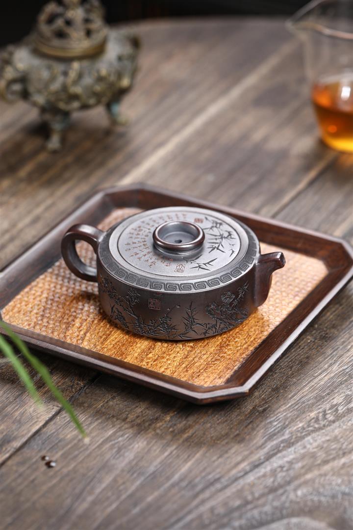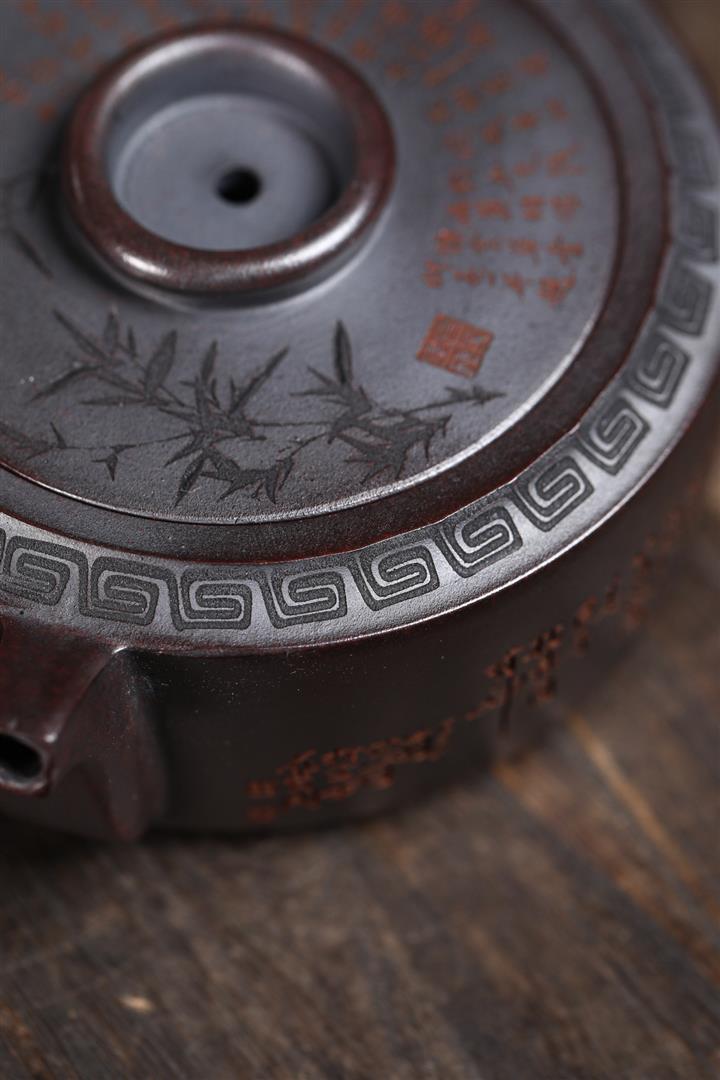 原矿紫朱泥山水瓦瓢紫砂壺POT5132