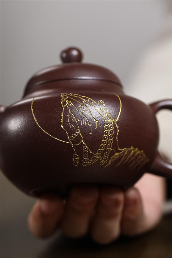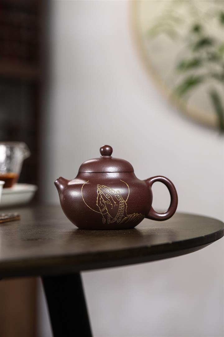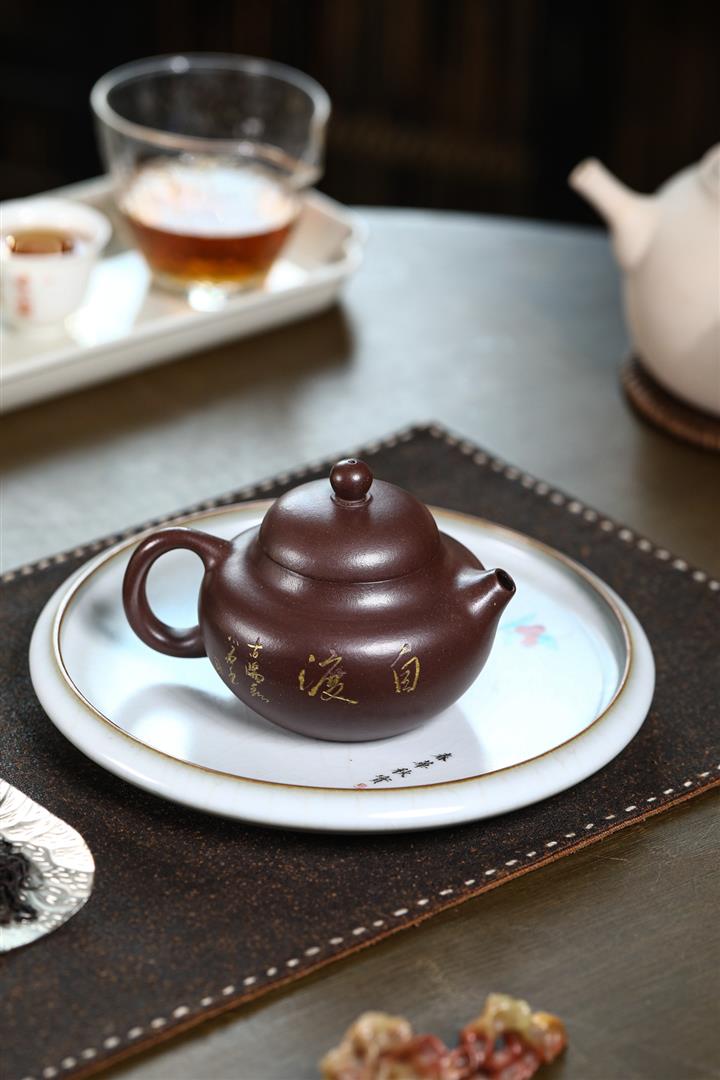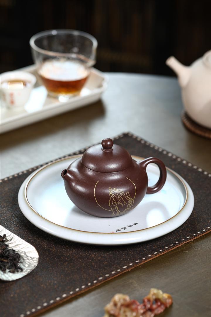 原礦綠泥刻繪漢瓦紫砂壺POT5438