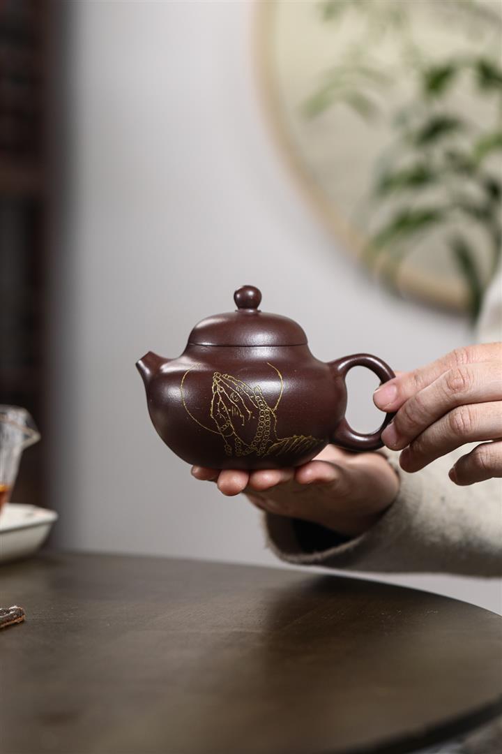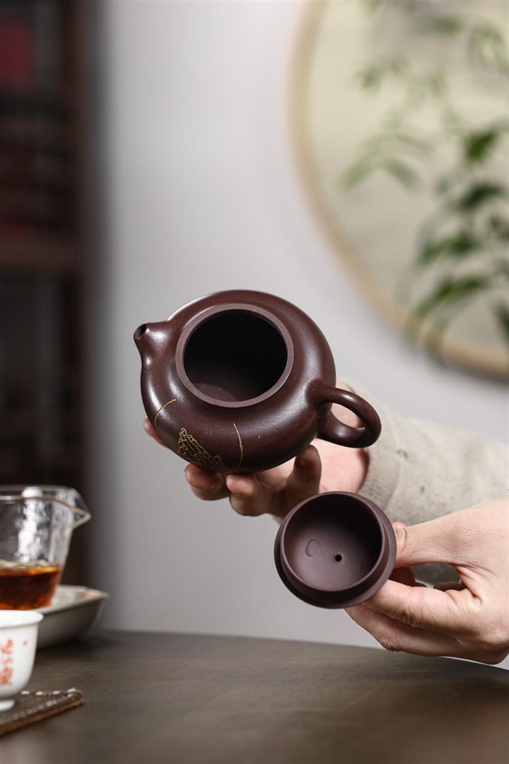 【作品介紹】此款壺形線條流暢,壺把,壺嘴,壺身壹氣呵成栩栩如生,是收藏把玩的好壺,泥料色澤古樸典雅,日久使用,漸露鋒芒,養成變化快,溫潤莊重,用其泡茶,使用的年代久,壺身就溫潤,泡出來的茶湯也就醇郁芳馨。