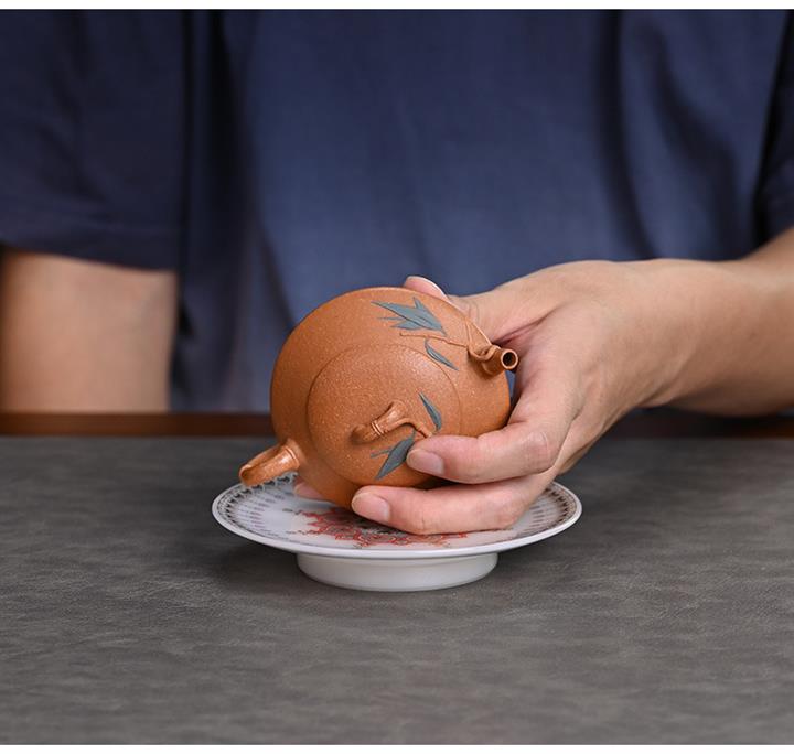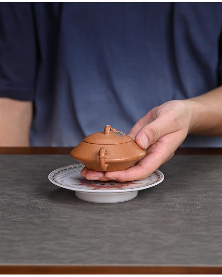 【泥料特點】砂土氣重,似淳實農民,日久使用,漸露鋒芒,養成變化,溫潤莊重。紫砂是壹種雙重氣孔結構的多孔性材質,氣孔微細,密度高。用紫砂壺沏茶,不失原味,且香不渙散,得茶之真香真味。紫砂使用越久,壺身色澤越發光亮照人,氣韻溫雅。紫砂壺長久使用器身會因撫摸擦拭,變得越發溫潤光澤。