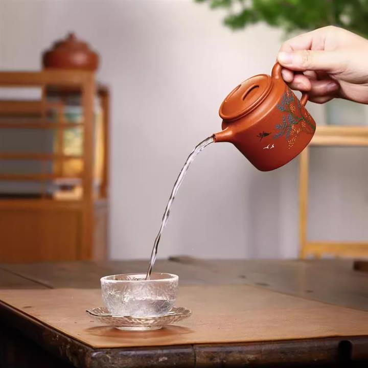 【泥料特點】砂土氣重,似淳實農民,日久使用,漸露鋒芒,養成變化,溫潤莊重。紫砂是壹種雙重氣孔結構的多孔性材質,氣孔微細,密度高。用紫砂壺沏茶,不失原味,且香不渙散,得茶之真香真味。紫砂使用越久,壺身色澤越發光亮照人,氣韻溫雅。紫砂壺長久使用器身會因撫摸擦拭,變得越發溫潤光澤。