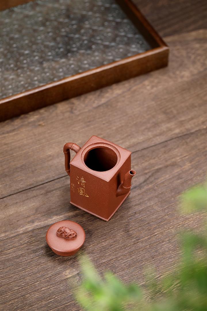 340cc原礦本山綠泥繪刻四方壺茶壺POT8887
