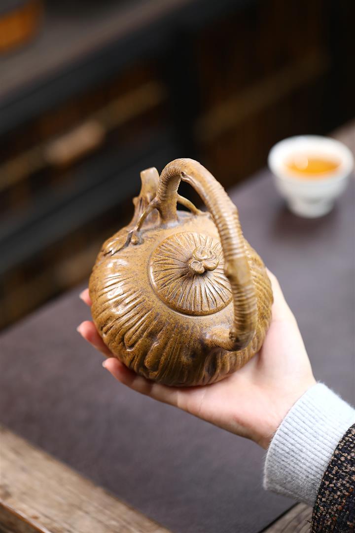 300cc原礦玄鐵石黃黑料報春茶壺POT8297