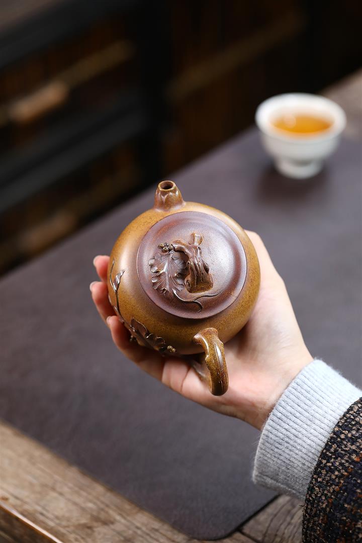 【泥料特點】砂土氣重,似淳實農民,日久使用,漸露鋒芒,養成變化,溫潤莊重。紫砂是壹種雙重氣孔結構的多孔性材質,氣孔微細,密度高。用紫砂壺沏茶,不失原味,且香不渙散,得茶之真香真味。紫砂使用越久,壺身色澤越發光亮照人,氣韻溫雅。紫砂壺長久使用器身會因撫摸擦拭,變得越發溫潤光澤。