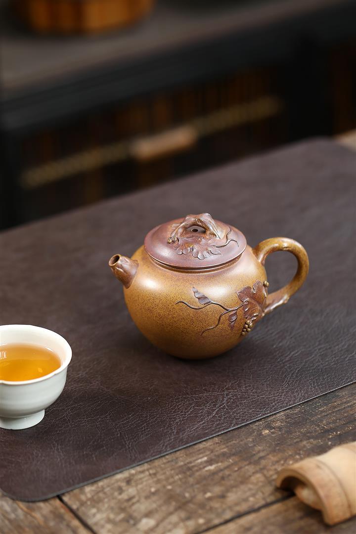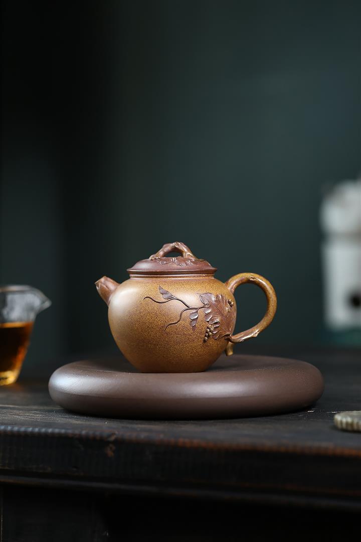 260cc原礦龍骨金砂泥繪葡萄容天茶壺POT8973