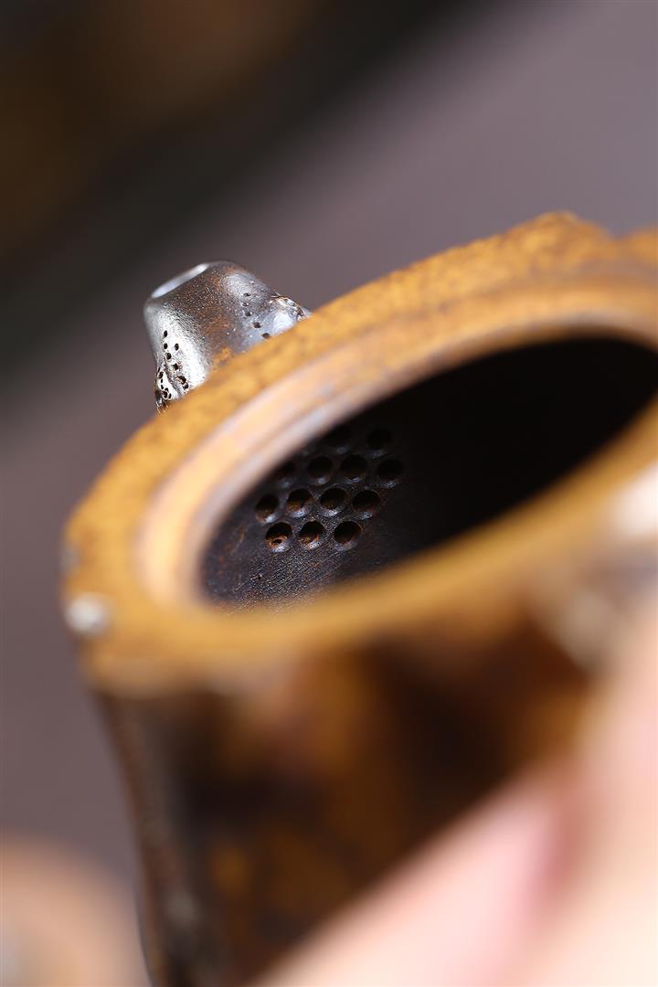 【泥料特點】砂土氣重,似淳實農民,日久使用,漸露鋒芒,養成變化,溫潤莊重。紫砂是壹種雙重氣孔結構的多孔性材質,氣孔微細,密度高。用紫砂壺沏茶,不失原味,且香不渙散,得茶之真香真味。紫砂使用越久,壺身色澤越發光亮照人,氣韻溫雅。紫砂壺長久使用器身會因撫摸擦拭,變得越發溫潤光澤。