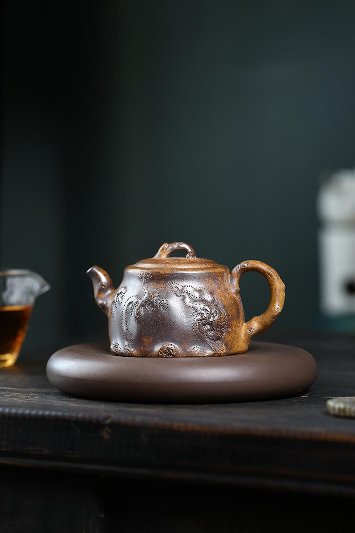 300cc原礦紫砂龍骨金砂梅樁茶壺POT8975