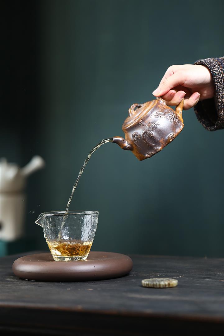 【泥料特點】砂土氣重,似淳實農民,日久使用,漸露鋒芒,養成變化,溫潤莊重。紫砂是壹種雙重氣孔結構的多孔性材質,氣孔微細,密度高。用紫砂壺沏茶,不失原味,且香不渙散,得茶之真香真味。紫砂使用越久,壺身色澤越發光亮照人,氣韻溫雅。紫砂壺長久使用器身會因撫摸擦拭,變得越發溫潤光澤。