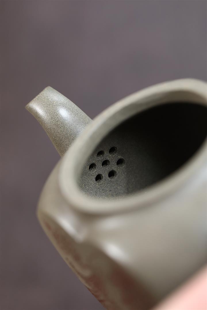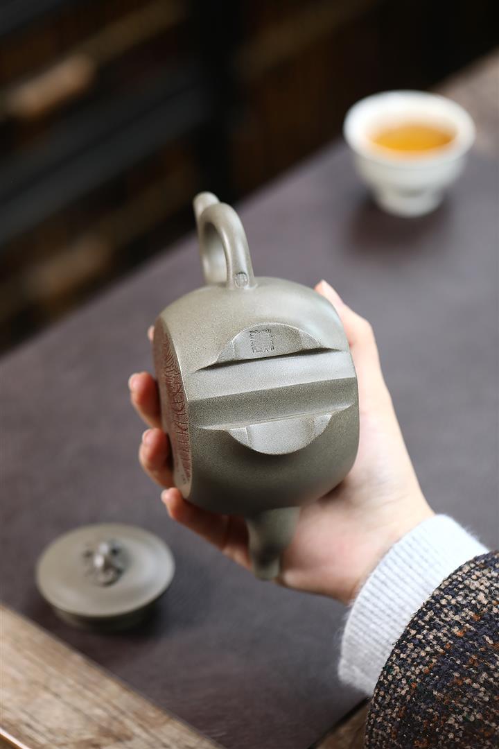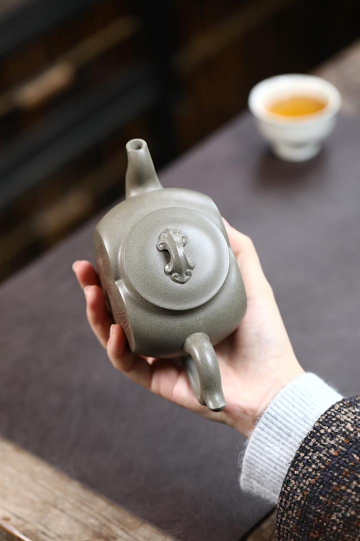 【作品介紹】此款壺形線條流暢,壺把,壺嘴,壺身壹氣呵成栩栩如生,是收藏把玩的好壺,泥料色澤古樸典雅,日久使用,漸露鋒芒,養成變化快,溫潤莊重,用其泡茶,使用的年代久,壺身就溫潤,泡出來的茶湯也就醇郁芳馨。
