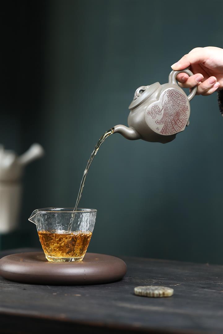 【泥料特點】砂土氣重,似淳實農民,日久使用,漸露鋒芒,養成變化,溫潤莊重。紫砂是壹種雙重氣孔結構的多孔性材質,氣孔微細,密度高。用紫砂壺沏茶,不失原味,且香不渙散,得茶之真香真味。紫砂使用越久,壺身色澤越發光亮照人,氣韻溫雅。紫砂壺長久使用器身會因撫摸擦拭,變得越發溫潤光澤。