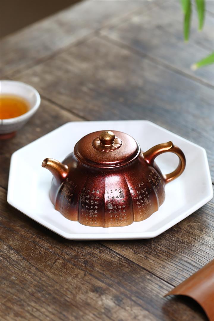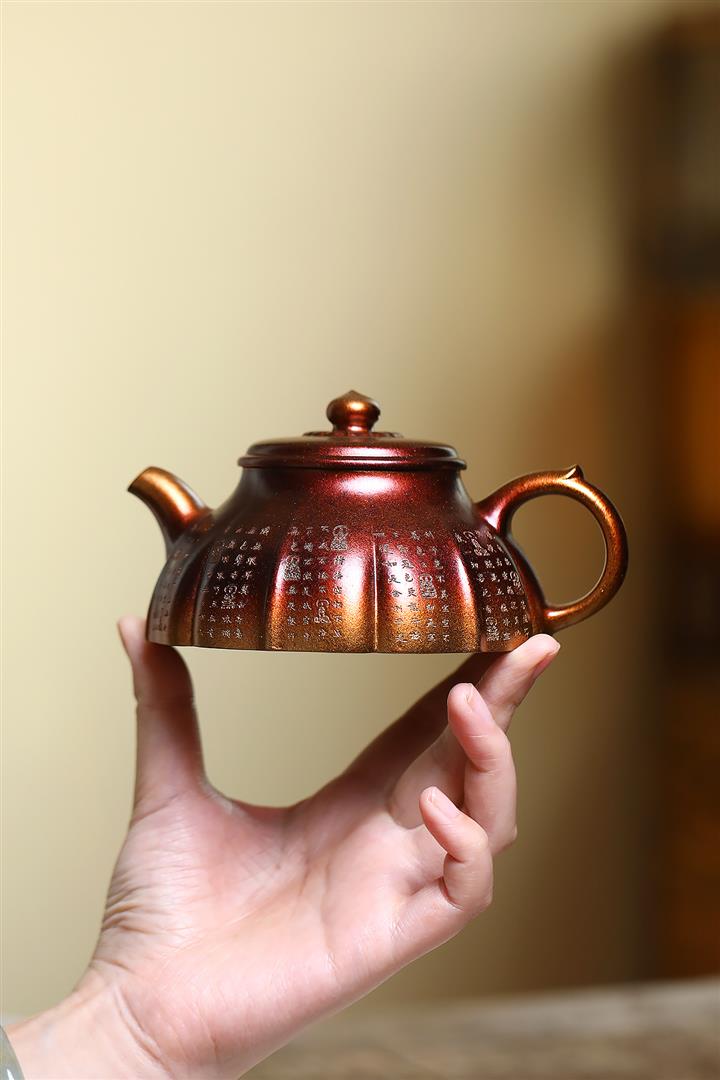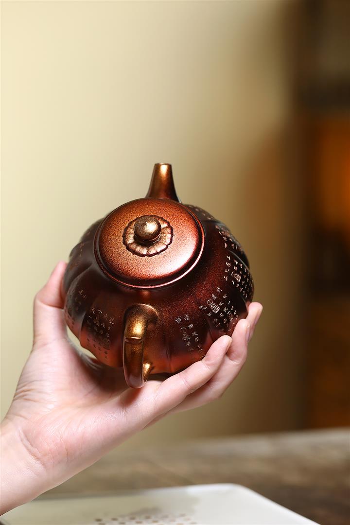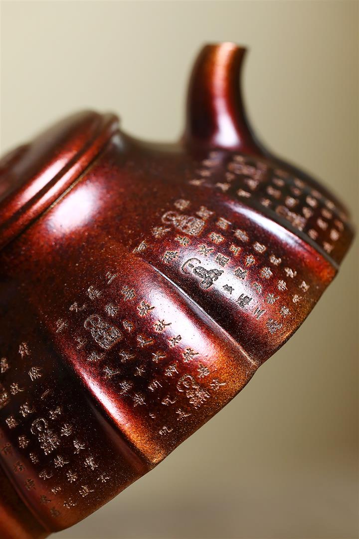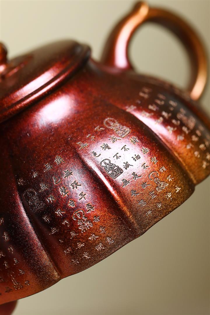 紫砂壺名家老紫泥刻繪周盤壺POT4009